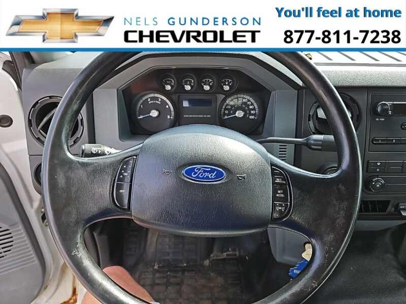 Nels Gunderson Chevrolet is very proud to offer this trusty 2011 Ford F-750SD XL in White, beautifully equipped with ABS brakes, Air Conditioning, AM/FM radio, Bumpers chrome, Driver's Seat Mounted Armrest, Dual rear wheels, Passenger vanity mirror, Power steering, Speed control, Tachometer, Tilt steering wheel, and Variably intermittent wipers.