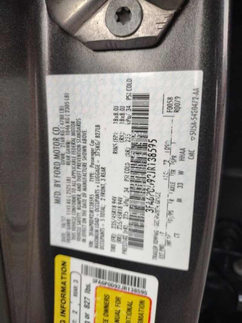 - VIN 3FA6P0D92JR138595
