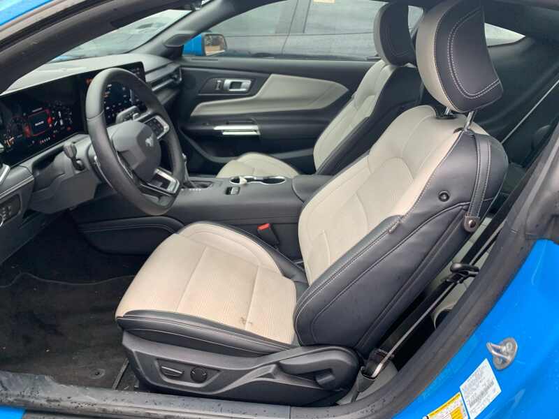 2024 Ford Mustang GT Premium 5.0 Coyote V8 480 Horsepower, Co-Pilot 360, B&O 12 Speaker Sound System, Active Valve Exhaust, Bronze Appearance package, Grabber Blue Metallic 2D Coupe RWD 10-Speed Automatic 5.0L V8 Ti-VCT 3.15 Limited-Slip Rear-Axle, 4-Wheel Disc Brakes, ABS brakes, Active Anti-Theft System, Active Valve Performance Exhaust, Air Conditioning, Alloy wheels, AM/FM Stereo, Auto High-beam Headlights, Automatic temperature control, B&O Sound System by Bang & Olufsen, Brake assist, Bronze Appearance Package, Bronze Package Badges, Bumpers body-color, Compass, Connected Built-In Navigation, Delay-off headlights, Driver door bin, Driver vanity mirror, Dual front impact airbags, Dual front side impact airbags, Electronic Stability Control, Emergency communication system 911 Assist, Equipment Group 401A High Package, Exterior Parking Camera Rear, Ford Co-Pilot360 Assist+, Four wheel independent suspension, Front anti-roll bar, Front Bucket Seats, Front Center Armrest, Front reading lights, Fully automatic headlights, HD Radio, Illuminated Door-Sill Scuff Plates, Illuminated entry, Integrated Turn Signals, Knee airbag, Leather Shift Knob, Leather steering wheel, Leather-Trimmed Bucket Seats w/Color Accents, Locking Center Console, Low tire pressure warning, Memory Driver Seat & Mirrors, Occupant sensing airbag, Outside temperature display, Overhead airbag, Overhead console, Panic alarm, Passenger door bin, Passenger vanity mirror, Power door mirrors, Power steering, Power windows, Pre-Collision Assist w/Automatic Emergency Braking, Radio data system, Rain sensing wipers, Rear anti-roll bar, Rear Parking Sensors, Rear window defroster, Remote keyless entry, Security Package, SiriusXM w/360L, Speed control, Speed-sensing steering, Speed-Sensitive Wipers, Split folding rear seat, Spoiler, Sport steering wheel, Steering wheel mounted audio controls, SYNC 4.0 QNX, Tachometer, Telescoping steering wheel, Tilt steering wheel, Traction control, Trip computer, Variably intermittent wipers, Voltmeter, Wheel Locking Kit, Wheels 19 x 8.5 Sinister Bronze Painted Alum.
