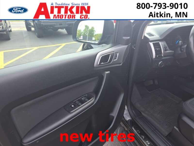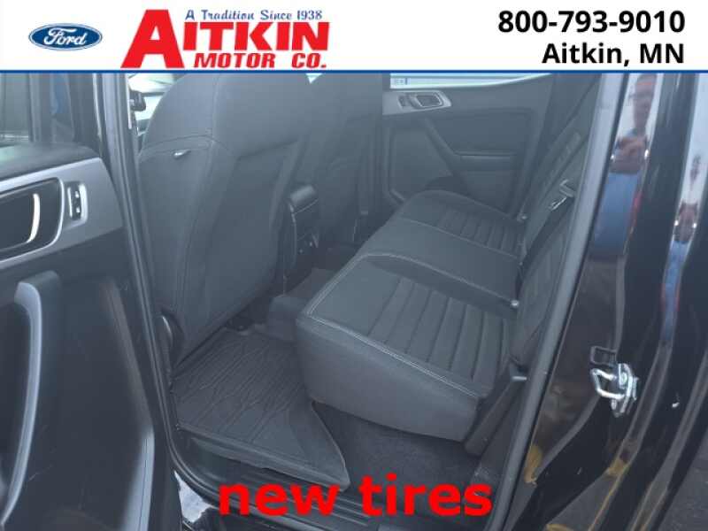 Aitkin Motor Company is proud to offer this stunning-looking 2021 Ford Ranger XLT in Shadow Black, beautifully equipped with Black Appearance Package (5 Rectangular Black Running Boards, Black Grille w/Black Surround, Body-Color Front & Rear Bumpers, Dark Box Decal, Tough Bed Spray-In Bedliner, and Wheels 18 Black Painted Aluminum), Equipment Group 302A High (110V AC Power Outlet, Auto-Dimming Rear-View Mirror, Heated Front Seats, Leather-Wrapped Shifter, Leather-Wrapped Steering Wheel, Manual-Sliding Rear-Window, Power-Folding Sideview Mirrors w/Power Glass, Remote Start, and Reverse Sensing System), FX4 Off-Road Package (Electronic-Locking Rear Differential, FX4 Off-Road Box Decal, Off-Road Screen in Cluster, Off-Road Tuned Suspension, and Terrain Management System), Sport Appearance Package (Black Grille w/Magnetic Surround, Black Wheel-Lip Molding, Magnetic Front & Rear Bumper, Sport Box Decal, and Wheels 17 Magnetic Painted Aluminum Sport), Trailer Tow Package (Class IV Trailer Hitch Receiver), 3.73 Axle Ratio, 4-Wheel Disc Brakes, 6 Speakers, ABS brakes, Air Conditioning, Alloy wheels, AM/FM radio SiriusXM, AM/FM Stereo, Auto High-beam Headlights, Automatic temperature control, Brake assist, Bumpers body-color, Compass, Delay-off headlights, Driver door bin, Dual front impact airbags, Dual front side impact airbags, Electronic Stability Control, Emergency communication system SYNC 3 911 Assist, Engine Block Heater, Exterior Parking Camera Rear, Front anti-roll bar, Front Bucket Seats, Front Center Armrest, Front dual zone A/C, Front fog lights, Front License Plate Bracket, Front Premium Cloth Bucket Seats, Front reading lights, Front wheel independent suspension, Fully automatic headlights, Illuminated entry, Low tire pressure warning, Occupant sensing airbag, Outside temperature display, Overhead airbag, Overhead console, Panic alarm, Passenger door bin, Power door mirrors, Power steering, Power windows, Rear reading lights, Rear seat center armrest, Rear step bumper, Rear window defroster, Remote keyless entry, Security system, SiriusXM Satellite Radio, Speed control, Speed-sensing steering, Steering wheel mounted audio controls, SYNC 3, SYNC 3/Apple CarPlay/Android Auto, Telescoping steering wheel, Tilt steering wheel, Traction control, Trip computer, Variably intermittent wipers, Voltmeter, and Wheels 17 Silver-Painted Aluminum!