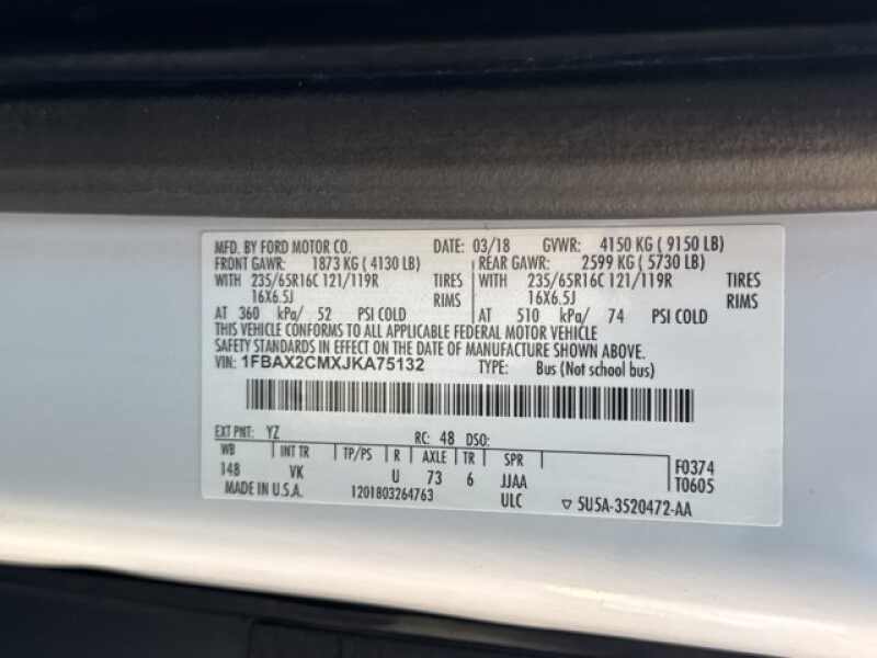 - VIN 1FBAX2CMXJKA75132