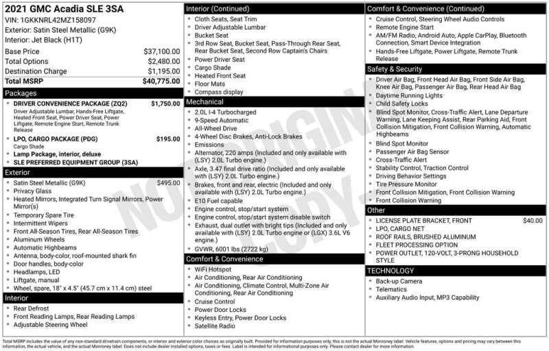 WELCOME TO DECEMBER AT CORWIN CHRYSLER DODGE JEEP RAM OF FARGO!! WE HAVE GREAT SAVINGS ON ALL OF OUR PRE-OWNED VEHICLES AVAILABLE!! WE HAVE ONE OF THE LARGEST SELECTIONS OF INVENTORIES IN OUR AREA AT ONE SINGLE LOCATION!! Satin Steel Metallic 2021 GMC Acadia SLE 4D Sport Utility AWD 2.0L Turbocharged CARFAX One-Owner. Clean CARFAX.