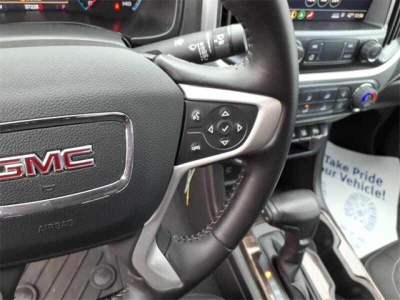 THIS 2021 GMC CANYON ELEVATION CREW CAB FEATURES CLOTH SEATS, A 6-WAY POWER DRIVER SEAT, AUTOMATIC AIR CONDITIONING, A LEATHER-WRAPPED STEERING WHEEL, AND AN AUTO-DIMMING MIRROR FOR A COMFORTABLE AND FUNCTIONAL INTERIOR. IT INCLUDES AN UPGRADED 8 NAVIGATION SYSTEM WITH APPLE CARPLAY/ANDROID AUTO, BOSE PREMIUM AUDIO, HD RADIO, REMOTE START, HD REAR VISION CAMERA, AND DRIVER ALERT PACKAGE WITH FORWARD COLLISION ALERT, LANE DEPARTURE WARNING, AND REAR PARK ASSIST. EXTERIOR HIGHLIGHTS INCLUDE 18 BLACK ALUMINUM WHEELS, LED FOG LAMPS, POWER HEATED MIRRORS, EZ-LIFT TAILGATE, FRONT RECOVERY HOOKS, AND A SPRAY-ON BEDLINER WITH TRAILERING EQUIPMENT AND A 3.42 REAR AXLE.