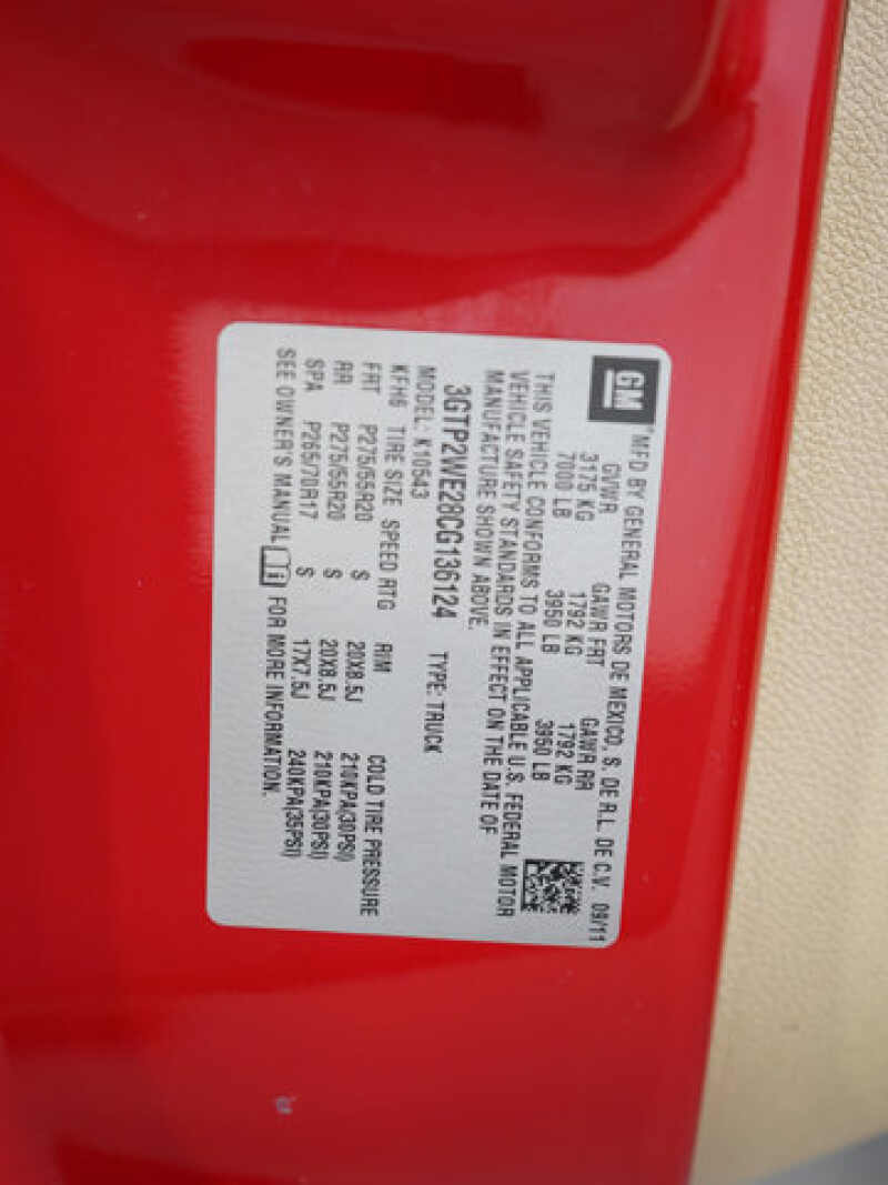 - VIN 3GTP2WE28CG136124