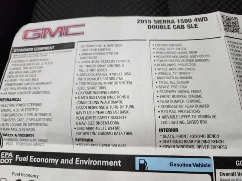 Used 2015 GMC Sierra 1500 SLE DOUBLESHORTSLE1Z714WDBACKUP CAMHEATED SEATS1 OWNER