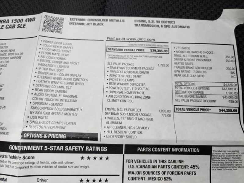 * 5.3 Liter V8 Ecotec3 Engine with E85 Flex Fuel Capabilities and Active Fuel Management, 355 Horsepower