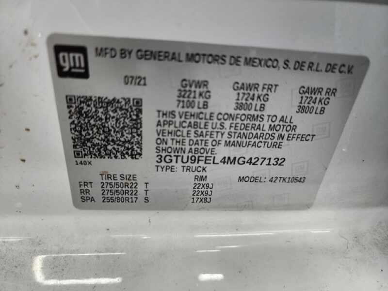 - VIN 3GTU9FEL4MG427132