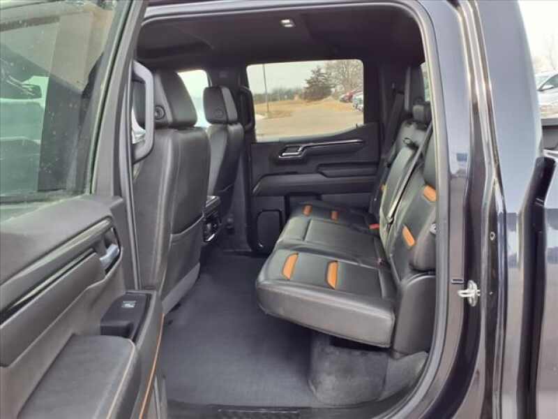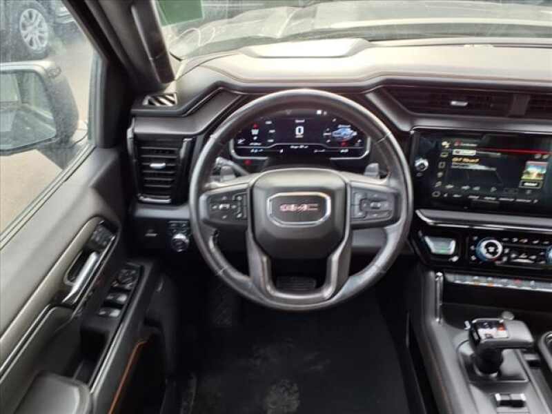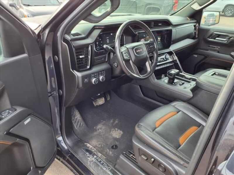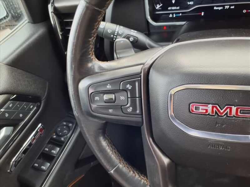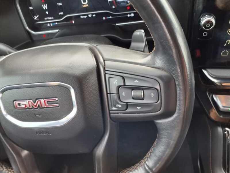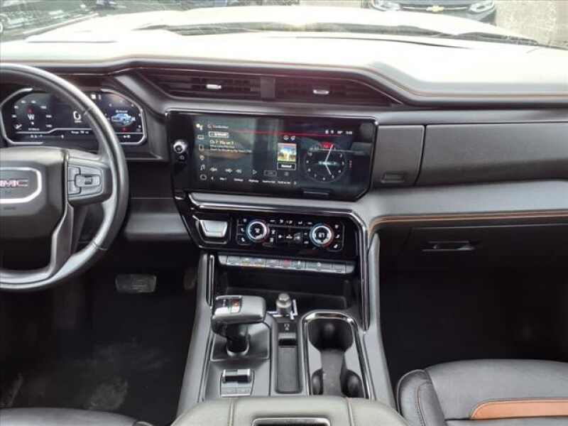 Titanium Rush Metallic 2022 GMC Sierra 1500 AT4 4WD 10-Speed Automatic EcoTec3 6.2L V8 10-Speed Automatic, 4WD, Jet Black With Kalahari Accents Leather, 120-Volt Bed Mounted Power Outlet, 120-Volt Instrument Panel Power Outlet, 2 USB Ports, 4-Wheel Disc Brakes, 7 Speakers, ABS brakes, Air Conditioning, AM/FM radio SiriusXM with 360L, Auto High-beam Headlights, Auto-Locking Rear Differential, Automatic temperature control, Brake assist, Delay-off headlights, Driver Memory, Dual front impact airbags, Dual front side impact airbags, Electric Rear-Window Defogger, Electrical Steering Column Lock, Electronic Stability Control, Emergency communication system OnStar and GMC Connected Services capable, Front anti-roll bar, Front dual zone A/C, Front fog lights, Front wheel independent suspension, Fully automatic headlights, Hill Descent Control, Hitch Guidance, Keyless Open & Start, Low tire pressure warning, Memory seat, Navigation System, Occupant sensing airbag, Off-Road Suspension, Overhead airbag, Panic alarm, Perimeter Lighting, Power Door Locks, Power driver seat, Power Front Passenger Windows w/Express Up/Down, Power Front Windows w/Driver Express Up/Down, Power Rake & Telescoping Steering Column, Power Rear Windows w/Express Down, Power steering, Power windows, Premium audio system GMC Infotainment System, Premium Bose 7-Speaker Sound System, Push Button Start, Radio data system, Radio Premium GMC Infotainment Audio System, Rear window defroster, Remote keyless entry, Remote Vehicle Starter System, Security system, SiriusXM w/360L, Speed-sensing steering, Steering Wheel Audio Controls, Steering wheel mounted audio controls, Theft Deterrent System (Unauthorized Entry), Traction control, Trailering Package, Wireless Phone Projection.