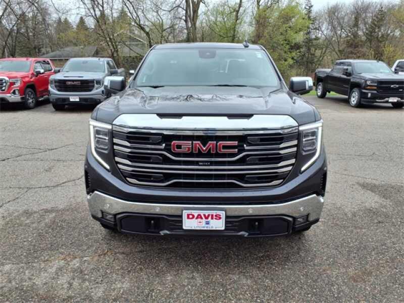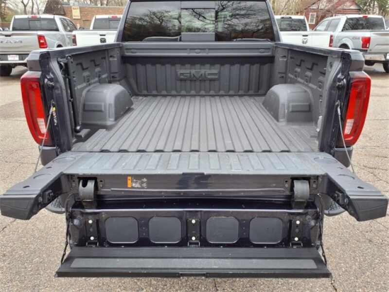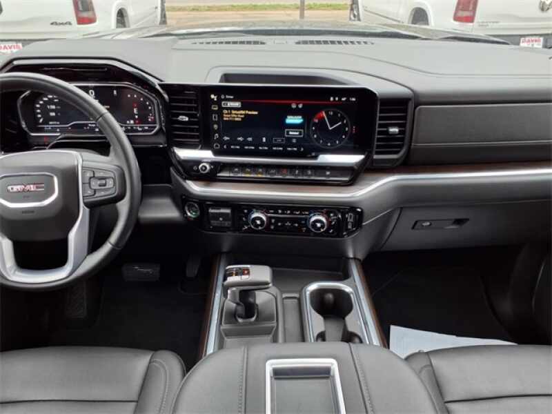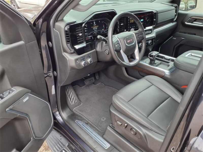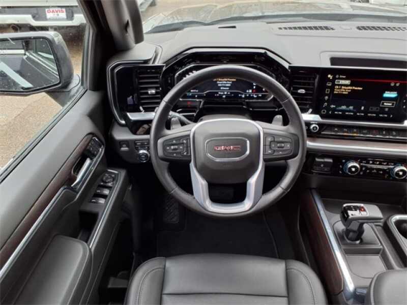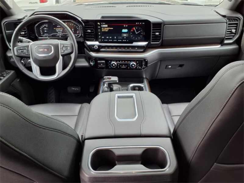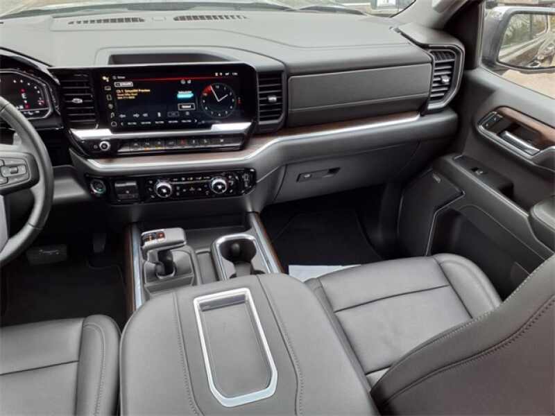 THIS SIERRA 1500 SLT FEATURES UPGRADED LEATHER-APPOINTED BUCKET SEATS WITH 10-WAY POWER ADJUSTMENT, DRIVER MEMORY, HEATED FRONT AND REAR OUTBOARD SEATS, A POWER SUNROOF, AND WIRELESS DEVICE CHARGING. TECHNOLOGY UPGRADES INCLUDE A 13.4 TOUCHSCREEN WITH GOOGLE BUILT-IN, BOSE PREMIUM AUDIO, ADAPTIVE CRUISE CONTROL, HD SURROUND VISION, TRAILER CAMERA PROVISIONS, AND A TRAILERING APPALL PART OF THE SLT PREMIUM PLUS PACKAGE. EXTERIOR HIGHLIGHTS INCLUDE 20 POLISHED ALUMINUM WHEELS, CHROME ASSIST STEPS, A SPRAY-ON BEDLINER, THE GMC MULTIPRO TAILGATE, AND THE X31 OFF-ROAD PACKAGE WITH SKID PLATES, HILL DESCENT CONTROL, AND DUAL EXHAUST.