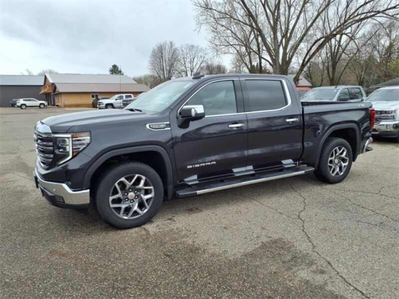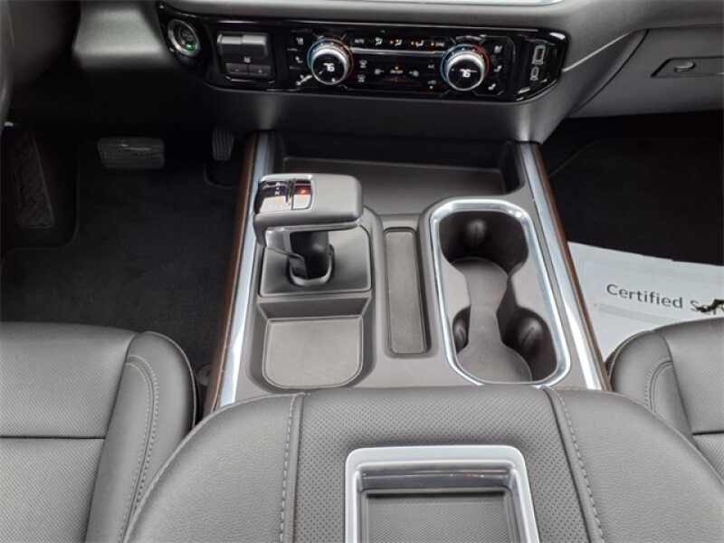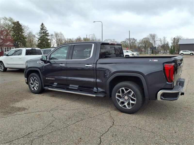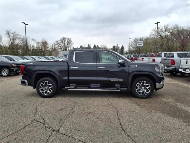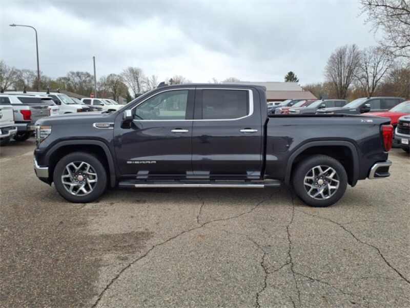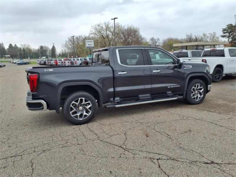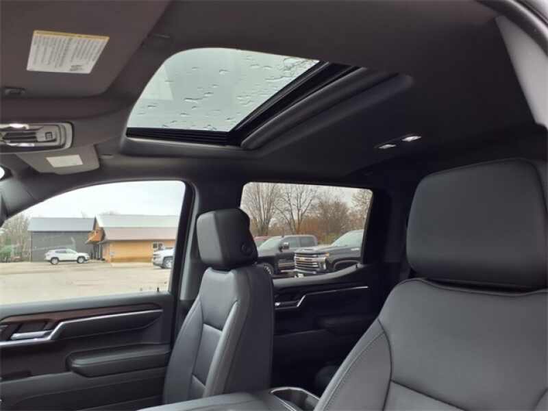 THIS SIERRA 1500 SLT FEATURES UPGRADED LEATHER-APPOINTED BUCKET SEATS WITH 10-WAY POWER ADJUSTMENT, DRIVER MEMORY, HEATED FRONT AND REAR OUTBOARD SEATS, A POWER SUNROOF, AND WIRELESS DEVICE CHARGING. TECHNOLOGY UPGRADES INCLUDE A 13.4 TOUCHSCREEN WITH GOOGLE BUILT-IN, BOSE PREMIUM AUDIO, ADAPTIVE CRUISE CONTROL, HD SURROUND VISION, TRAILER CAMERA PROVISIONS, AND A TRAILERING APPALL PART OF THE SLT PREMIUM PLUS PACKAGE. EXTERIOR HIGHLIGHTS INCLUDE 20 POLISHED ALUMINUM WHEELS, CHROME ASSIST STEPS, A SPRAY-ON BEDLINER, THE GMC MULTIPRO TAILGATE, AND THE X31 OFF-ROAD PACKAGE WITH SKID PLATES, HILL DESCENT CONTROL, AND DUAL EXHAUST.