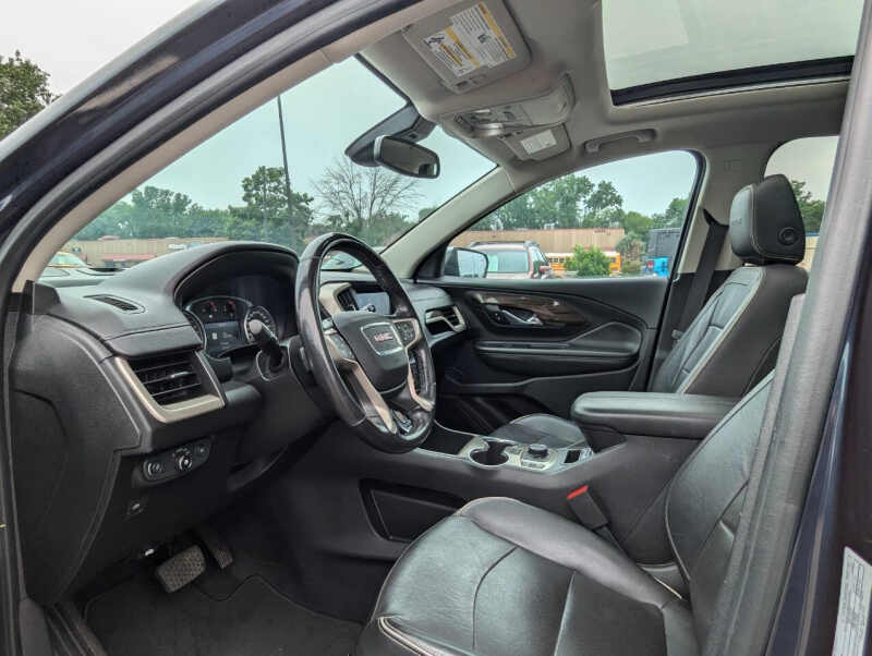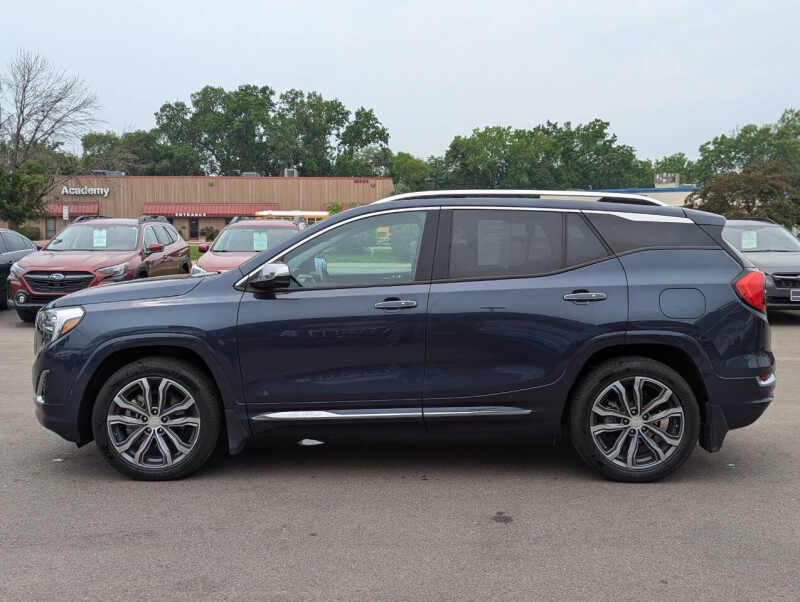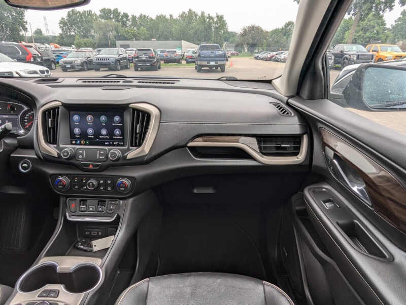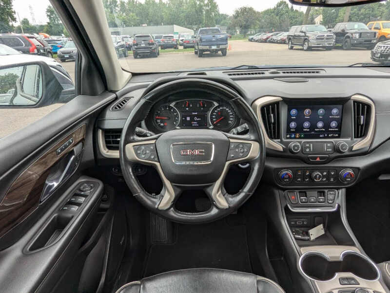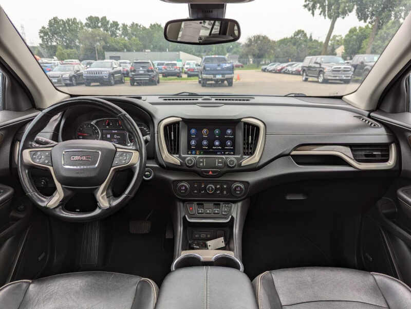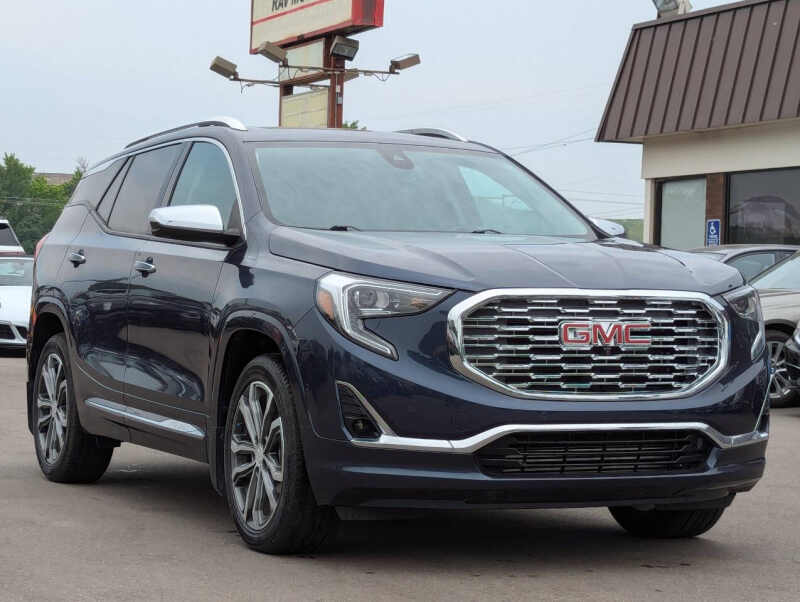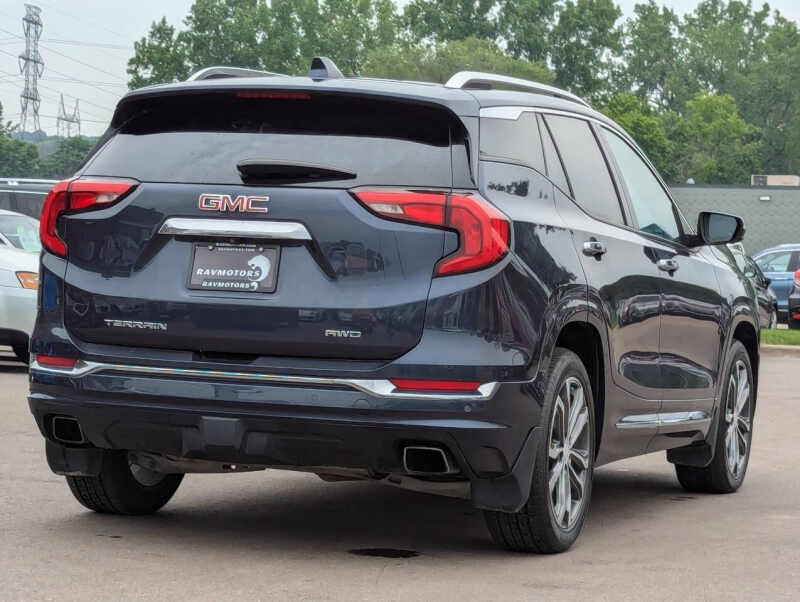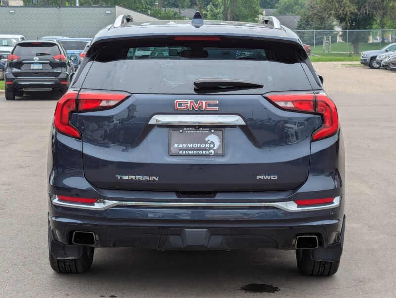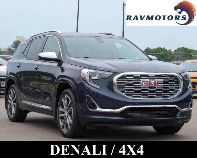 This vehicle is located at our Burnsville store. 2019 GMC Terrain Denali 4x4 the perfect blend of luxury, power, and versatility. Powered by a responsive 2.0L turbocharged engine and equipped with a smooth 9-speed automatic transmission and advanced all-wheel drive, this SUV delivers confident performance in any weather. The top-of-the-line Denali trim offers premium leather seating, ventilated front seats, a heated steering wheel, and a bold chrome-accented exterior that stands out. Inside, enjoy an 8 touchscreen infotainment system with Apple CarPlay, Android Auto, navigation, and a premium sound system. With advanced safety features like forward collision alert, lane keep assist, and rear park assist, plus up to 3,500 lbs of towing capacity and over 63 cubic feet of cargo space, this Terrain Denali is as practical as it is refinedideal for those who want comfort and capability in one sharp-looking package. Stop by RAVMOTORS to test drive this car. Well be more than happy to help you find the right car at the right price. We don't have any pushy or high-pressure salespeople. So come in and see for yourself why we have been the #1 DealerRater used car dealership of the year 5 years in a row. Extended Warranties and Financing options are available. Call us for vehicle availability at 952-456-4041 or email us at ravmotorsinfogmail.com. For more information and a full inventory visit us at www.ravmotors.com. We are open Monday Thursday 10 am 7 pm, Friday - Saturday 930 am 6 pm.