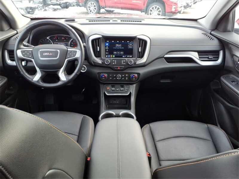 THE 2020 GMC TERRAIN AWD SLT FEATURES A PERFORATED LEATHER-APPOINTED INTERIOR WITH HEATED FRONT SEATS, 8-WAY POWER DRIVER SEAT WITH 2-WAY LUMBAR, POWER PASSENGER SEAT WITH LUMBAR ADJUSTMENT, DUAL-ZONE AUTOMATIC CLIMATE CONTROL, LEATHER-WRAPPED STEERING WHEEL, AND 6-SPEAKER AUDIO SYSTEM WITH 4 USB DATA PORTS. SAFETY TECHNOLOGY INCLUDES HD REAR VISION CAMERA, AUTOMATIC EMERGENCY BRAKING, FORWARD COLLISION ALERT, LANE KEEP ASSIST, FRONT PEDESTRIAN BRAKING, FOLLOWING DISTANCE INDICATOR, TEEN DRIVER, AND THEFT-DETERRENT SYSTEM. EXTERIOR HIGHLIGHTS INCLUDE RED QUARTZ TINTCOAT PAINT, HIGH-INTENSITY DISCHARGE HEADLAMPS, LED TAIL LAMPS, INTELLIBEAM HEADLAMPS, ROOF RACK SIDE RAILS, 18 MACHINED ALUMINUM WHEELS, AND REMOTE VEHICLE START.