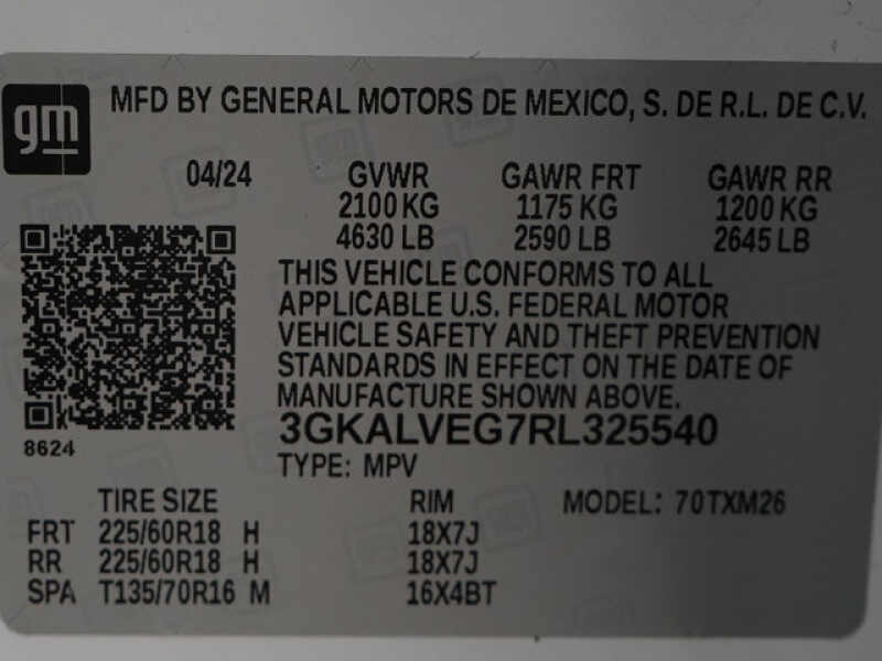 - VIN 3GKALVEG7RL325540