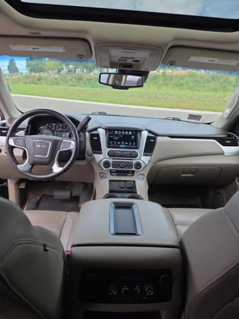 SEATS, SECOND ROW 60/40 SPLIT-FOLDING BENCH power release (STD), SEATS, FRONT BUCKET WITH PERFORATED LEATHER-APPOINTED heated and ventilated seat cushions, 12-way power driver and passenger seat includes 6-way power cushions, driver seat 2-position memory, 4-way power lumbar control and power recline (STD), REAR AXLE, 3.08 RATIO, OPEN ROAD PACKAGE, (CF5) power sunroof, (U42) rear seat entertainment system and on SLT (IO6) Audio system with navigation, ONYX BLACK, LICENSE PLATE FRONT MOUNTING PACKAGE, ENTERTAINMENT SYSTEM, REAR SEAT, BLU-RAY/DVD with remote control, overhead display, Wi-Fi wireless projection capability, four 2-channel wireless digital headphones, auxiliary HDMI/MHL audio/video input and 2 USB ports, ENGINE, 5.3L ECOTEC3 V8 with Active Fuel Management, Direct Injection and Variable Valve Timing, includes aluminum block construction (355 hp 265 kW 5600 rpm, 383 lb-ft of torque 518 N-m 4100 rpm) (STD), DVD SCREEN, THIRD ROW, COCOA/DUNE, PERFORATED LEATHER-APPOINTED SEAT TRIM (Interior color has lighter/darker two-tone effect.), AUDIO SYSTEM, 8 DIAGONAL COLOR TOUCH SCREEN NAVIGATION WITH GMC INFOTAINMENT SYSTEM AM/FM/SiriusXM stereo with seek-and-scan and digital clock, includes Bluetooth streaming audio for music and select phones voice-activated technology for radio and phone and Shop. Featuring Apple CarPlay and Android Auto capability for compatible phone 5 USB ports and 1 auxiliary jack, Wipers, front rain-sensing, intermittent.
