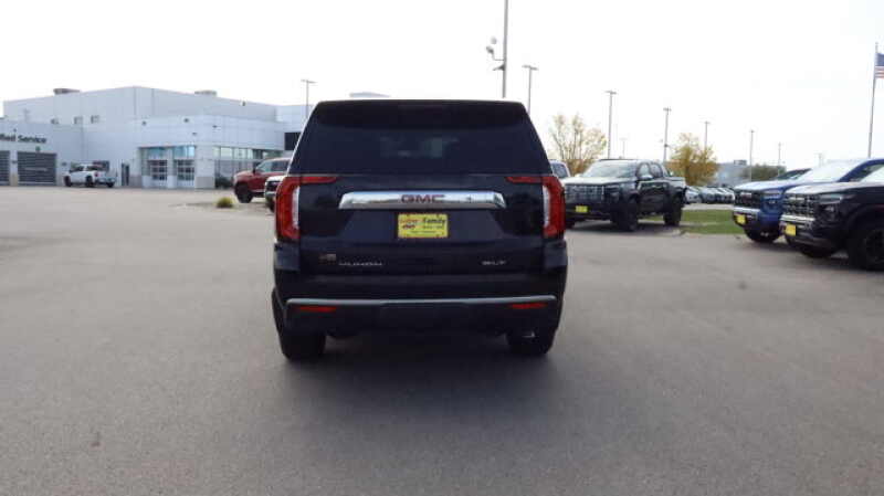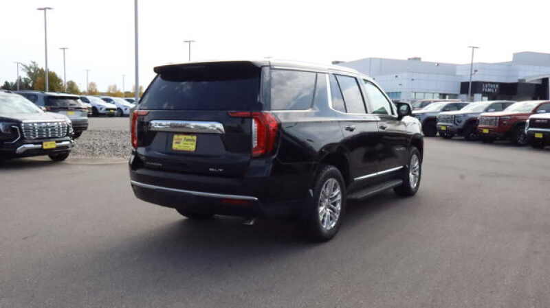 SLT LUXURY PACKAGE includes (UV2) HD Surround Vision, (UKK) Rear Pedestrian Alert, (A45) memory settings, (DXR) outside heated power-adjustable, power-folding, body-color mirrors with driver-side auto-dimming and integrated turn signal indicators, (N38) power tilt and telescopic steering column, (KI3) automatic heated steering wheel, (KA6) second row outboard heated seats, (ATT) second row power 60/40 split-folding bench seats and (AS8) third row power 60/40 splitfolding bench seats, SEATS, SECOND ROW BUCKET, POWER RELEASE, 2ND AND 3RD ROWS (dealer-installed), AUDIO SYSTEM, 10.2 DIAGONAL GMC INFOTAINMENT SYSTEM WITH NAVIGATION includes multi-touch display, AM/FM/SiriusXM stereo, Bluetooth streaming audio for music and most phones, Android Auto and Apple CarPlay capability for compatible phones, advanced voice recognition, in-vehicle apps, personalized profiles for infotainment and vehicle settings, ENGINE, 5.3L ECOTEC3 V8 with Dynamic Fuel Management, Direct Injection and Variable Valve Timing, includes aluminum block construction (355 hp 265 kW 5600 rpm, 383 lb-ft of torque 518 Nm 4100 rpm) (STD), TRANSMISSION, 10-SPEED AUTOMATIC electronically controlled with overdrive, includes Traction Select System including tow/haul (Most vehicles built on or after 6-7-2021 with a V8 engine will have (NSS) Not Equipped with Automatic Stop/Start, which removes Automatic Stop/Start, Engine control stop/start disable button and its content.) (STD).