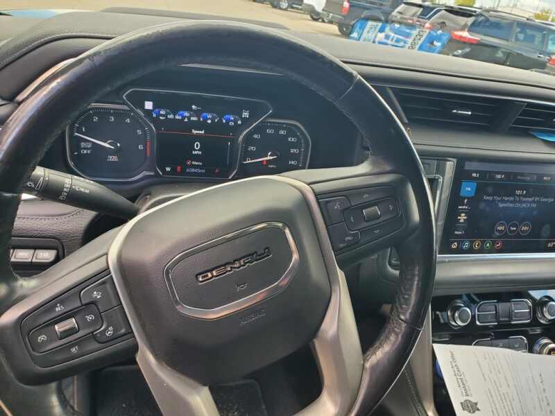 This GMC Yukon is well equipped and includes the following features and benefits, Heated and Cooled Seats, Touchscreen Controls, Apple CarPlay, Android Auto, Bluetooth Hands-Free, 4x4 / 4 Wheel Drive / AWD, Local Trade, Advanced Technology Package, Denali Premium Package, Dual-Pane Panoramic Power Sunroof, Extra Capacity Cooling System, Max Trailering Package, Power-Retractable Assist Steps. Odometer is 9659 miles below market average!