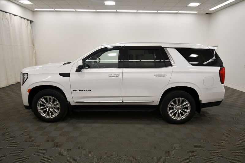 GMC Yukon SLT EcoTec3 5.3L V8 4WD, 2 Presets For Outside Rearview Mirrors, 3rd Row 60/40 Power-Folding Split-Bench Seat, AM/FM Stereo, Apple CarPlay/Android Auto, Auto-dimming Rear-View mirror, Bose 9-Speaker Stereo Audio System Feature, Front & Rear Park Assist, Hands-Free Power Programmable Rear Liftgate, HD Surround Vision, Heated 2nd Row Outboard Position Seats, Heated door mirrors, Heated front seats, Heated Steering Wheel, Lane Change Alert w/Side Blind Zone Alert, Lane Keep Assist w/Lane Departure Warning, Memory seat, Navigation System, Outside Heated Power-Adjustable Mirrors, Power Liftgate, Power Release 2nd Row 60/40 Split-Folding Bench Seat, Power Tilt & Telescopic Steering Column, Rain sensing wipers, Rear Pedestrian Alert, Remote keyless entry, SiriusXM w/360L, SLT Luxury Package, Telescoping steering wheel, Tilt steering wheel, Tri zone A/C, Universal Home Remote, Ventilated front seats, Wheels 20 x 9 6-Spoke Polished Aluminum. Odometer is 30124 miles below market average!