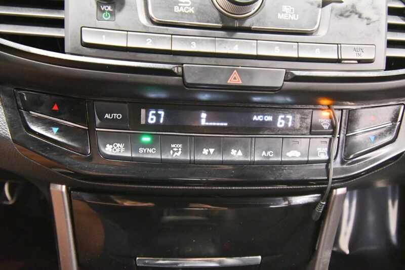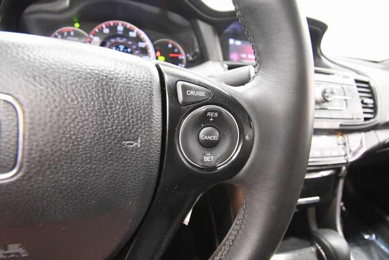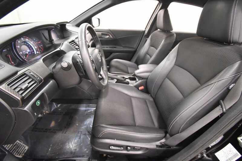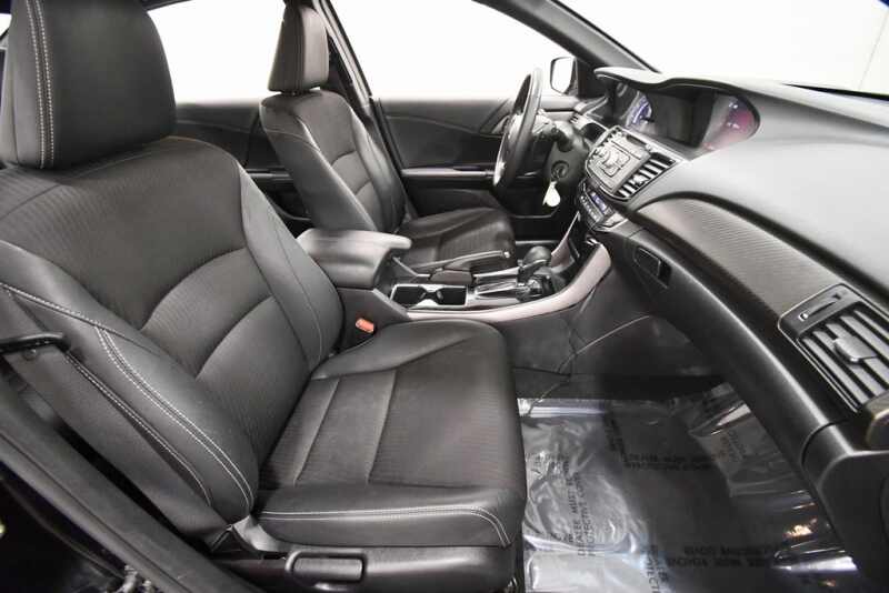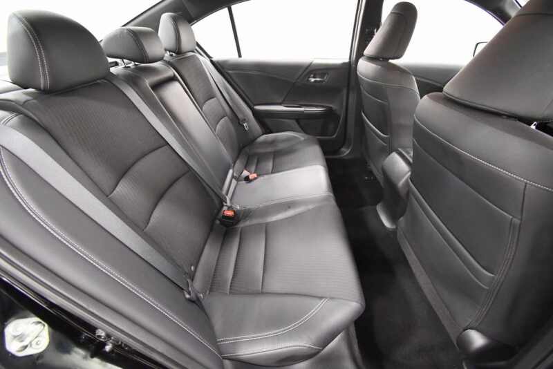 Honda Accord Sport 2.4L I4 DOHC i-VTEC 16V Cloth, 19 Alloy Wheels, 4 Speakers, Cloth Seat Trim, Exterior Parking Camera Rear, Front Bucket Seats, Fully automatic headlights, Leather Shift Knob, Low tire pressure warning, Occupant sensing airbag, Power driver seat, Radio 160-Watt AM/FM Audio System, Remote keyless entry, Split folding rear seat, Steering wheel mounted audio controls, Telescoping steering wheel, Tilt steering wheel. Certified. 26/34 City/Highway MPG