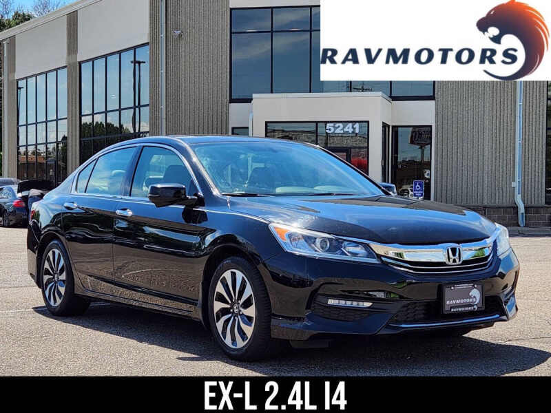 Available at our Crystal location, Experience refined comfort and impressive efficiency with this 2017 Honda Accord EX-L Sedan! This well-appointed 4-door sedan offers a perfect blend of sophistication and practicality, making it an ideal choice for daily commutes and long-distance journeys alike. Under the hood, you'll find a responsive and fuel-efficient 2.4L I4 engine, delivering a remarkable 36 MPG on the highway, ensuring fewer stops at the pump. The EX-L trim elevates your driving experience with premium features and luxurious touches, promising a comfortable and connected ride every time. Enjoy the supple feel of leather-trimmed seating, the convenience of a power moonroof, and the advanced technology of a premium audio system. With its reputation for reliability and a spacious interior, this Accord is ready for all your adventures. Come on down to RavMotors of Crystal to test-drive our cars! We'll be happy to help you find the right car at the right price. Call for vehicle availability at 763-401-4242 or email us at ravmotorsofcrystalgmail.com. Make sure to check out our inventory at www.ravmotors.com We stand behind all of our cars. We are open from 1000 AM - 700 PM on Monday-Thursday and 1000 AM - 600 PM on Friday-Saturday.