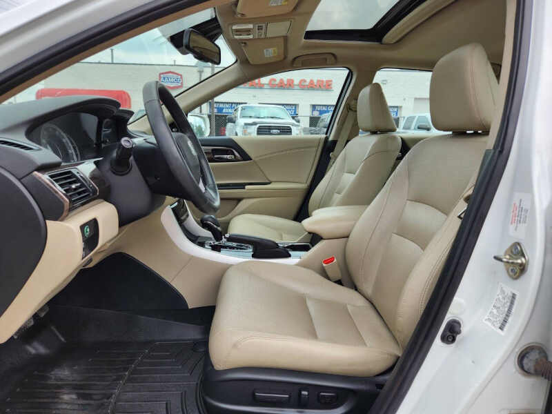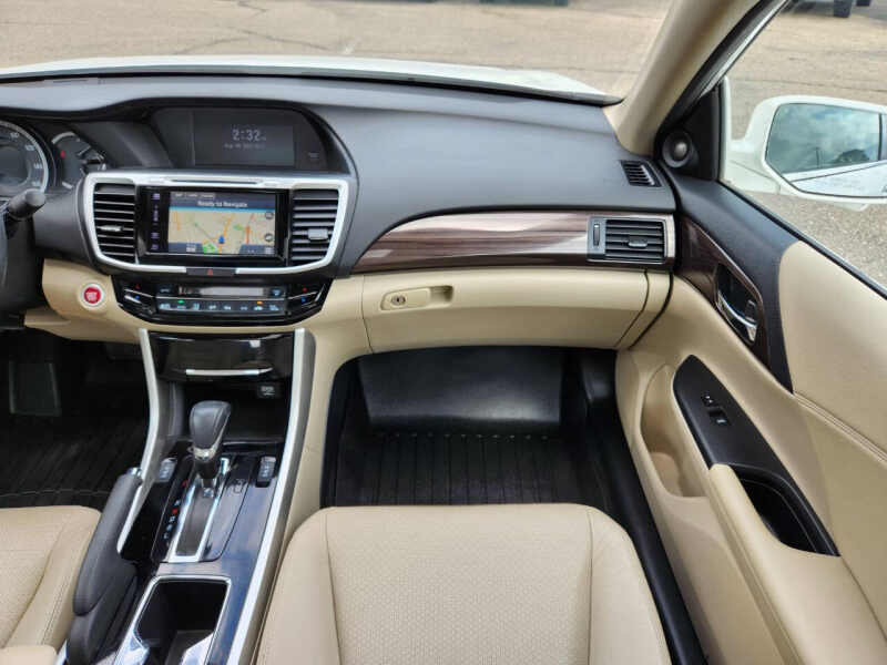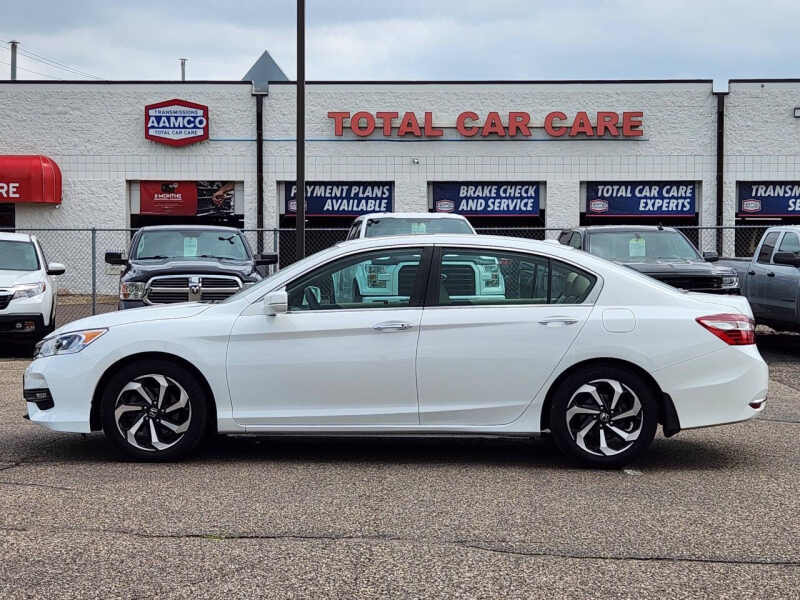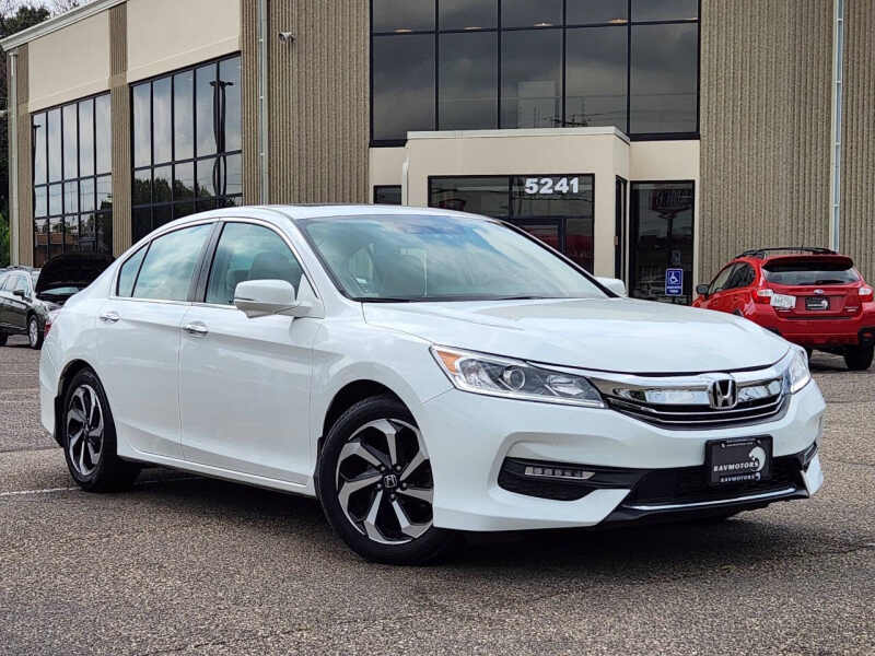 Available at our Crystal location, Discover the perfect blend of sophistication, efficiency, and advanced safety in this 2017 Honda Accord EX-L w/Navi w/Honda Sensing. This sedan has been amazingly maintained, offering a premium driving experience that stands the test of time. Powered by a reliable and fuel-efficient 2.4L I4 engine, this Accord delivers a smooth and responsive ride while achieving an impressive 36 MPG on the highway. The EX-L trim level elevates the experience with luxurious features, including sumptuous leather-trimmed seats, heated front seats for ultimate comfort on cold mornings, and a power moonroof that lets in natural light. The intuitive Honda Satellite-Linked Navigation System with voice recognition ensures you'll always find your way with ease. Safety is paramount, and this Accord is equipped with the highly sought-after Honda Sensing suite. This advanced package of safety and driver-assistive technologies includes Adaptive Cruise Control, Collision Mitigation Braking System, Lane Keeping Assist System, and Road Departure Mitigation System. These features work together to provide an extra layer of confidence and peace of mind on every drive. With its timeless design, spacious and comfortable cabin, and a reputation for unparalleled reliability, this 2017 Honda Accord EX-L w/Navi w/Honda Sensing is an outstanding choice for anyone seeking a well-equipped, safe, and efficient sedan. Come on down to RavMotors of Crystal to test-drive our cars! We'll be happy to help you find the right car at the right price. Call for vehicle availability at 763-401-4242 or email us at ravmotorsofcrystalgmail.com. Make sure to check out our inventory at www.ravmotors.com We stand behind all of our cars. We are open from 1000 AM - 700 PM on Monday-Thursday and 1000 AM - 600 PM on Friday-Saturday.