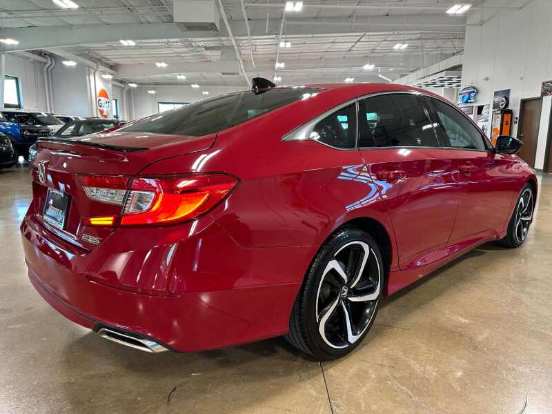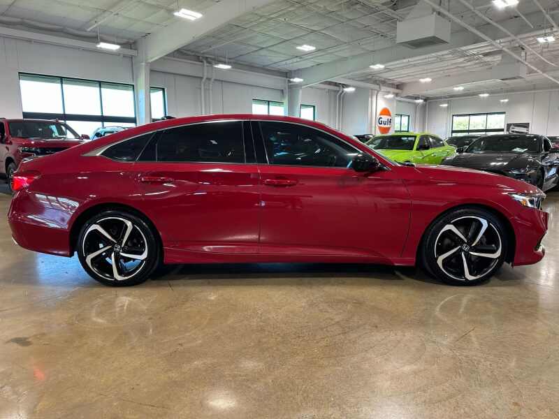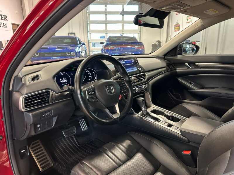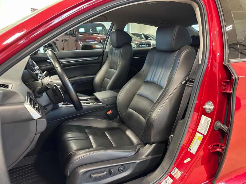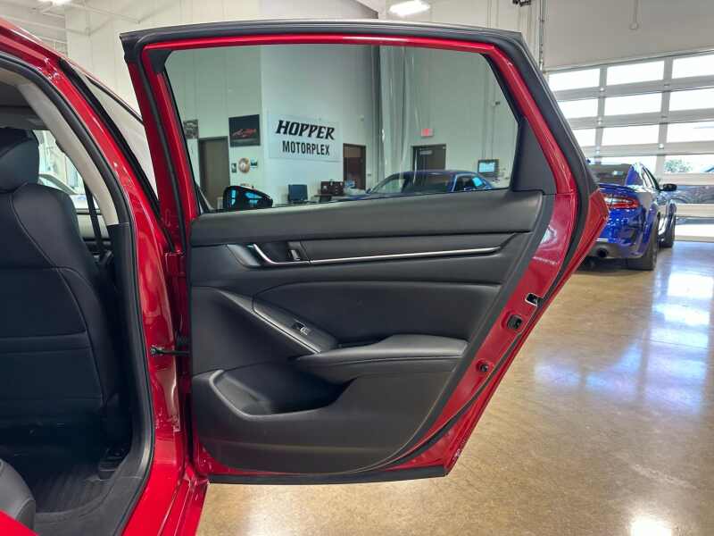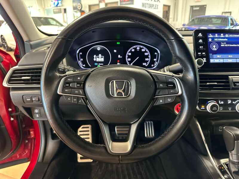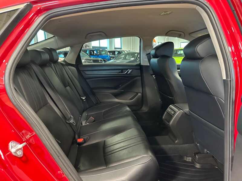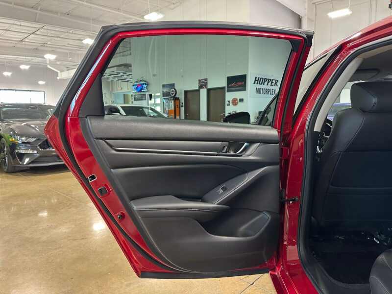 2022 Honda Accord Sport Special Edition, Premium Leather, San Marino Red 4D Sedan FWD CVT 1.5T I4 DOHC 16V Turbocharged VTEC Black w/Perforated Leather Seat Trim, 4-Wheel Disc Brakes, 8 Speakers, ABS brakes, Adaptive Cruise Control Adaptive Cruise Control (ACC) with Low-Speed Follow, Air Conditioning, Alloy wheels, AM/FM radio, Apple CarPlay/Android Auto, Auto High-beam Headlights, Automatic temperature control, Brake assist, Bumpers body-color, Delay-off headlights, Driver door bin, Driver vanity mirror, Dual front impact airbags, Dual front side impact airbags, Electronic Stability Control, Emergency communication system HondaLink, Exterior Parking Camera Rear, Forward collision Collision Mitigation Braking System (CMBS) + FCW mitigation, Four wheel independent suspension, Front anti-roll bar, Front Bucket Seats, Front Center Armrest, Front dual zone A/C, Front fog lights, Front reading lights, Fully automatic headlights, Heated door mirrors, Heated Front Bucket Seats, Heated front seats, Illuminated entry, Knee airbag, Lane Departure Warning System, Leather Shift Knob, Leather steering wheel, Low tire pressure warning, Occupant sensing airbag, Outside temperature display, Overhead airbag, Overhead console, Panic alarm, Passenger door bin, Passenger vanity mirror, Perforated Leather Seat Trim, Power driver seat, Power passenger seat, Power steering, Power windows, Puddle Light, Radio data system, Radio 180-Watt AM/FM Audio System, Rear anti-roll bar, Rear seat center armrest, Rear window defroster, Remote keyless entry, Security system, Speed control, Speed-sensing steering, Speed-Sensitive Wipers, Split folding rear seat, Spoiler, Steering wheel mounted audio controls, Tachometer, Telescoping steering wheel, Tilt steering wheel, Traction control, Trip computer, Variably intermittent wipers, Wheels 19 Machine-Finished Alloy w/Black Inserts.