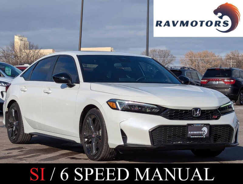 This vehicle is located at our Burnsville store. The 2025 Honda Civic Si with a 6-speed manual delivers a thrilling blend of sporty performance, modern tech, and everyday usability perfect for someone who loves to drive. Under the hood, it packs a peppy turbocharged engine tuned to give lively acceleration and responsive power, while the crisp 6-speed manual transmission puts control directly in your hands for an engaging, driver-focused experience. Inside, the cabin feels fresh and tech-savvy, with comfortable sport seats, supportive driving ergonomics, and the latest infotainment and connectivity features to keep you locked in whether commuting or cruising. The exterior strikes a dynamic, athletic pose sleek lines, an aggressive stance, and subtle sporty cues that hint at its performance pedigree. With its balance of agility, practicality, and Honda reliability, the 2025 Civic Si 6-speed manual is a fantastic choice for anyone who wants a daily driver thats also fun to push when the road calls. Stop by RAVMOTORS to test drive this car. Well be more than happy to help you find the right car at the right price. We don't have any pushy or high-pressure salespeople. So come in and see for yourself why we have been the #1 DealerRater used car dealership of the year 5 years in a row. Extended Warranties and Financing options are available. Call us for vehicle availability at 952-456-4041 or email us at ravmotorsinfogmail.com. For more information and a full inventory visit us at www.ravmotors.com. We are open Monday Thursday 10 am 7 pm, Friday - Saturday 930 am 6 pm.