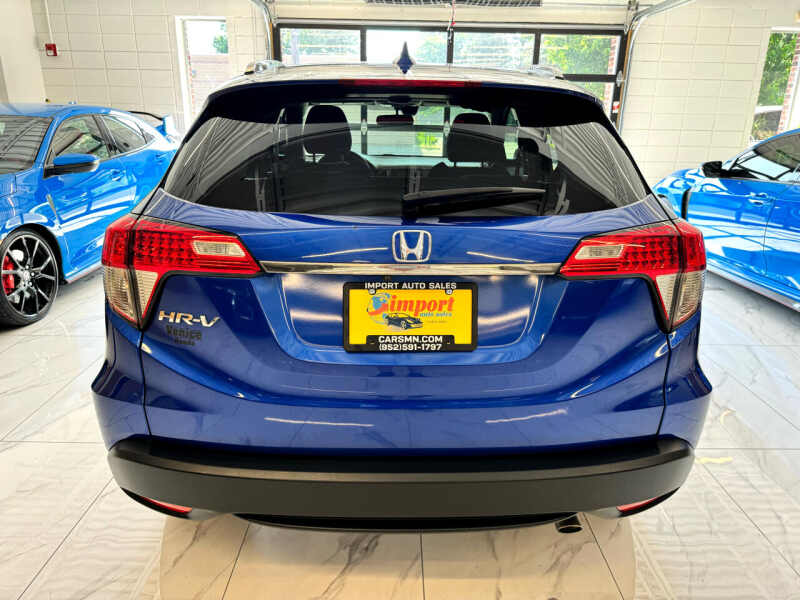 Zoom through the streets in style in this sleek Blue 2019 Honda HR-V! With its powerful 1.8L I-4 SOHC 16-Valve i-VTEC engine and Continuously Variable Transmission with Sport Mode, this car is ready to take you on all your adventures. Cruise with ease knowing you have the Active Noise Cancellation system for a peaceful ride.The HR-V is not only powerful but also efficient, thanks to the Eco Assist system. It handles like a dream with Electric Power-Assist Speed-Sensing Steering and Front-Wheel Drive. Plus, the stylish design with a sunroof, fog lamps, and LED brakelights will turn heads wherever you go.Step inside and relax in the comfortable heated front seats with adjustable head restraints. The spacious interior offers plenty of room for passengers and cargo, making every journey a comfortable one. Stay connected with the infotainment system and keep safe with the Collision Mitigation Braking System and back-up camera.Don't miss out on the opportunity to own this reliable and stylish Honda HR-V - it's the perfect combination of power, efficiency, and comfort for your next drive! Visit Import Auto Sales online at www.carsmn.com view more details and view other inventory or call us at 952-591-1797 today for vehicle availability.