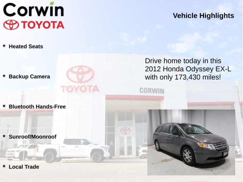 This Honda Odyssey is well equipped and includes the following features and benefits, Heated Seats, Backup Camera, Bluetooth Hands-Free, Sunroof/Moonroof, Local Trade, Automatic temperature control, Brake assist, Electronic Stability Control. 18/27 City/Highway MPG