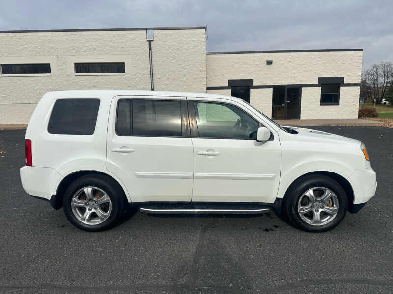 Recent Arrival! **NON-SMOKER**, **HEATED SEATS**, **BACKUP CAMERA**, **4WD**, **RUST FREE**, **2 OWNERS**, **LEATHER**, **SUNROOF**.Taffeta White 2013 Honda Pilot EX-L 4WD 5-Speed Automatic 3.5L V6 SOHC i-VTEC VCM 24VWe are open for all your Auto Body, Service and Sales needs! Complete indoor in person and online buying experience available!We do prefer to work by appointment to ensure vehicle is onsite and in our indoor showroom for you, call 763-999-0742 to confirm availability before coming out to our indoor showroom!Awards * 2013 IIHS Top Safety Pick * 2013 KBB.com 10 Best Used SUVs Under $20,000 * 2013 KBB.com 10 Best Used Midsize SUVs Under $15,000 * 2013 KBB.com Brand Image AwardsKelley Blue Book Brand Image Awards are based on the Brand Watch(tm) study from Kelley Blue Book Market Intelligence. Award calculated among non-luxury shoppers. For more information, visit www.kbb.com. Kelley Blue Book is a registered trademark of Kelley Blue Book Co., Inc. Visit SS Motors online at ssmotorsmn.com to see more pictures of this vehicle or call us at 763-999-0742 today to schedule your test drive.