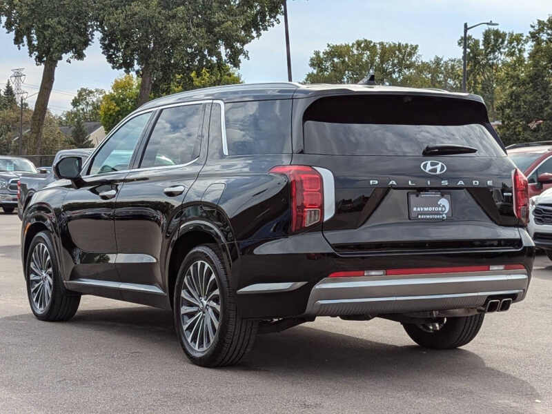 This vehicle is located at our Burnsville store. Experience refined luxury and commanding performance with the 2025 Hyundai Palisade Calligraphy AWD, the pinnacle of Hyundais flagship SUV lineup. This premium three-row SUV blends upscale sophistication with family-friendly functionality, boasting a bold, modern exterior highlighted by a cascading grille, 20-inch alloy wheels, and exclusive Calligraphy detailing. Inside, the Palisade surrounds you with quilted Nappa leather seats, ambient lighting, and a dual 12.3-inch panoramic display that seamlessly integrates navigation, entertainment, and vehicle controls. With standard HTRAC All-Wheel Drive, a confident 291-hp V6 engine, and advanced driver-assist technologies like Highway Driving Assist II and Parking Assist, its engineered for both everyday comfort and road-trip versatility. Whether you're commuting in style or venturing off the beaten path, the 2025 Palisade Calligraphy delivers a premium experience with a 5,000-pound towing capacity, ultra-quiet cabin, and Hyundais industry-leading warrantyoffering unbeatable value in the luxury SUV segment. Stop on by to RAVMOTORS to test drive this car. Well be more than happy to help you find the right car at the right price. We don't have any pushy or high-pressure salespeople. So come in and see for yourself why we have been the #1 DealerRater used car dealership of the year 5 years in a row. Extended Warranties and Financing options are available. Call us for vehicle availability at 952-456-4041 or email us at ravmotorsinfogmail.com. For more information and a full inventory visit us at www.ravmotors.com. We are open Monday Thursday 10 am 7 pm, Friday - Saturday 930 am 6 pm.