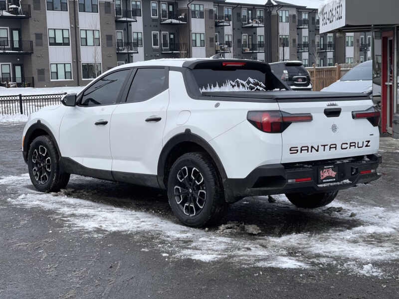 Experience capability, comfort, and modern technology with this 2022 Hyundai Santa Fe SE AWD, finished in a clean White exterior with a Black leather interior. This one-owner, clean-title, no-accident vehicle has been regularly serviced at Hyundai, ensuring excellent long-term reliability. Equipped with a 2.5L I4 engine, 8-speed automatic transmission, and confident AWD, this Santa Fe is ready for all seasons and daily driving needs. It also features a 2,000-lb towing capacity (with proper hitch/trailer-brake setup). Inside, youll find a comfortable and spacious cabin with 5-seat capacity, power-adjustable front seat, dual-zone climate control, digital instrument cluster, and a touchscreen display with modern connectivity. A rearview camera adds confidence when maneuvering, while the unique Crew Cab 4.3 ft Short Bed configuration provides added versatility for cargo and lifestyle use. Trade-ins welcome, warranties available, and nationwide shipping offered. Visit us at 2021 Mainstreet, Hopkins, MN 55343, or call 952-426-1522 for more information.