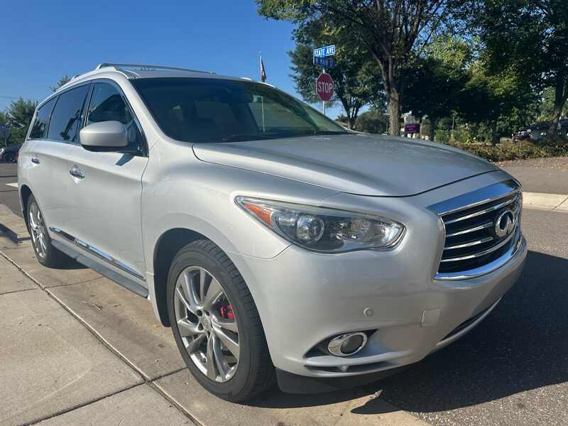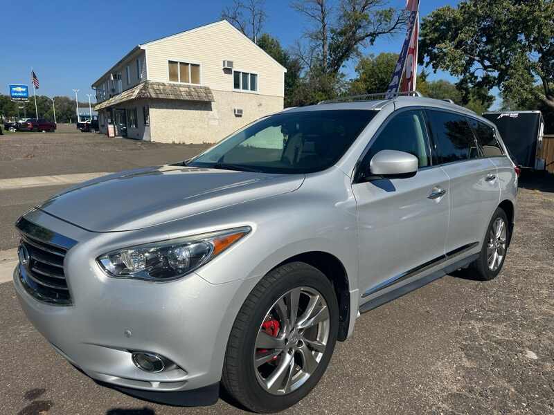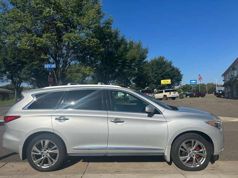 What a great find in this low-miles, fully loaded, and well kept 2013 Infiniti JX35. This is an all-wheel-drive that's a treat to drive, and has 3rd row seating and all kinds of features.For a twelve year old car, we are very impressed with the condition of it. Vehicle will have rebuilt title from really, really moderate damage. We had this fixed within 1 week and it was then driven consistently and fully vetted for almost 4,000 miles. One of our favorite budget cars of the year--SO NICE! Visit us at MHC Imports 315 W Main St Anoka MN 55303. Please call ahead of time if at all possible, as we expect the first person to test-drive this beauty to buy it--that nice of an SUV!