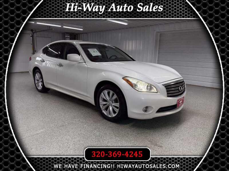 Recent Arrival! 5.6L V8! 2011 INFINITI M56 Moonlight White X AWD 7-Speed Automatic with Manual Shift MP3, Bluetooth, Clean CarFax, Leather, Heated Seats, Sunroof/Moonroof, Navigation/GPS/NAVI, Backup Camera, Remote Start, Cruise Control, Steering Wheel Controls, Keyless Entry, USB/AUX ports, MP3 player, AWD. Please call/text 320-369-4245 or visit our store 319 4th Avenue South. Pease, MN. Stop by for a test drive, and check out some of our financing options! Available only at Hi-Way Auto Sales, where the customer is #1. Family owned and operated since 1953! Please call/text 320-369-4245 or visit our store 319 4th Avenue South. Pease MN. Stop by for a test drive and check out some of our financing options! Available only at Hi-Way Auto Sales where the customer is #1. Family owned and operated since 1953!Visit Hi-Way Auto Sales online at www.hiwayautosales.com to see more pictures of this vehicle or call us at 320-369-4245 today to schedule your test drive.