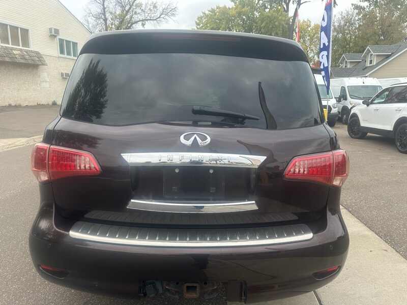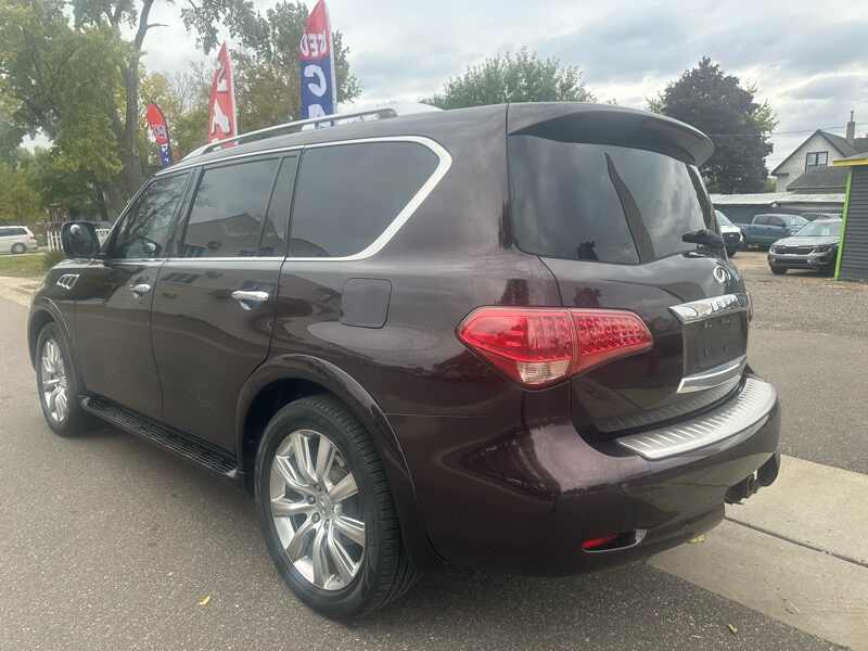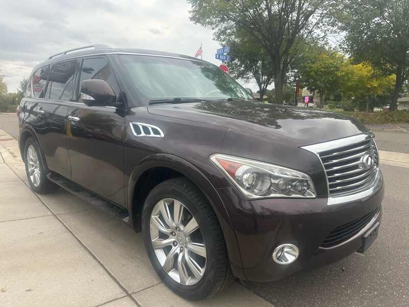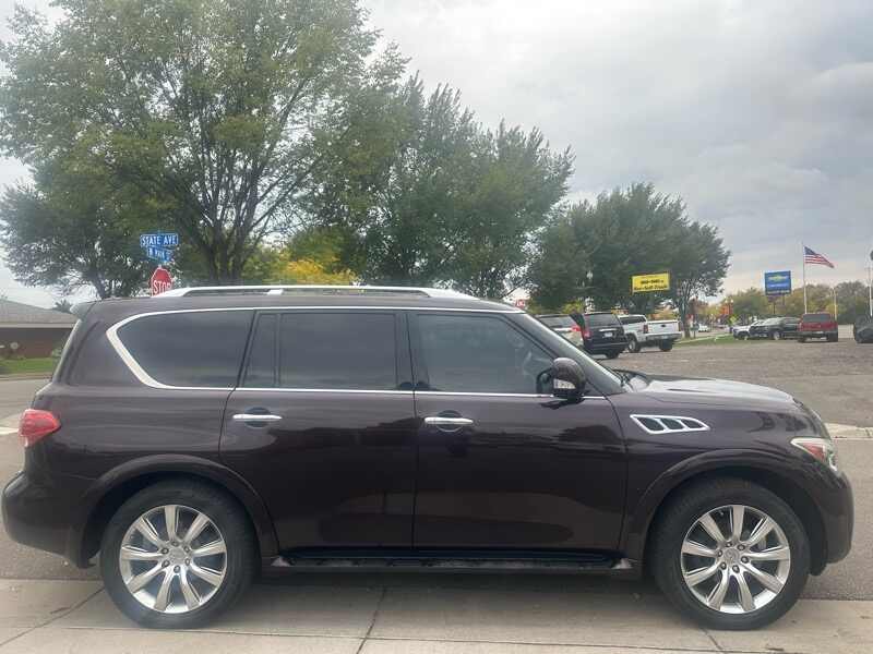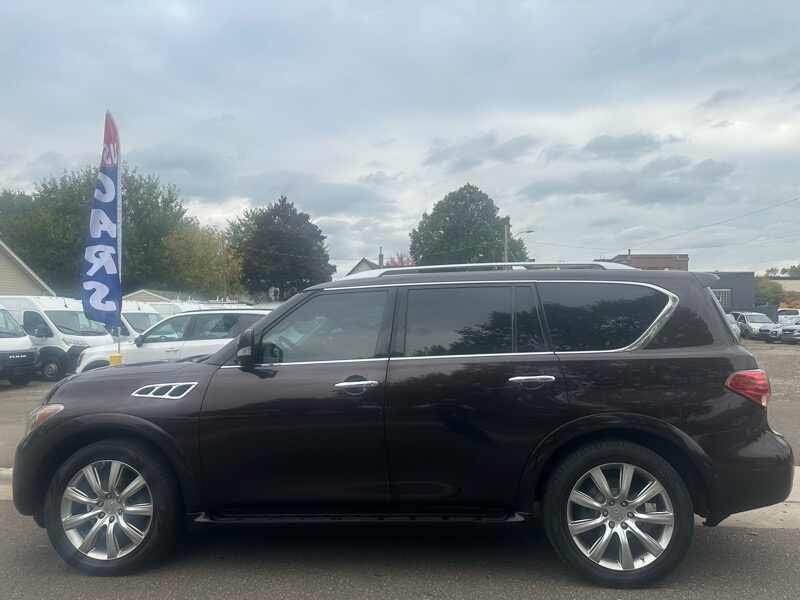 We were floored when we went to auction to pick up this really well kept 2012 Infiniti QX56. Only 116k miles on this 7-passenger 4x4 that is FULLY LOADED. All the bells and whistles of a modern vehicle are built right into this vehicle. Mind-blowing quality for a 13 year old car. Will have Rebuilt Title from very moderate damage to fender. All repairs are complete and already passed inspection. No major parts were even necessary in the repair of this vehicle, and as always, we are more than happy to share the damage photos. Visit us at 315 W Main St Anoka MN 55303, where we have specialized in light damage & low-miles state inspected vehicles for a decade. We do offer finance options and warranties, as well.