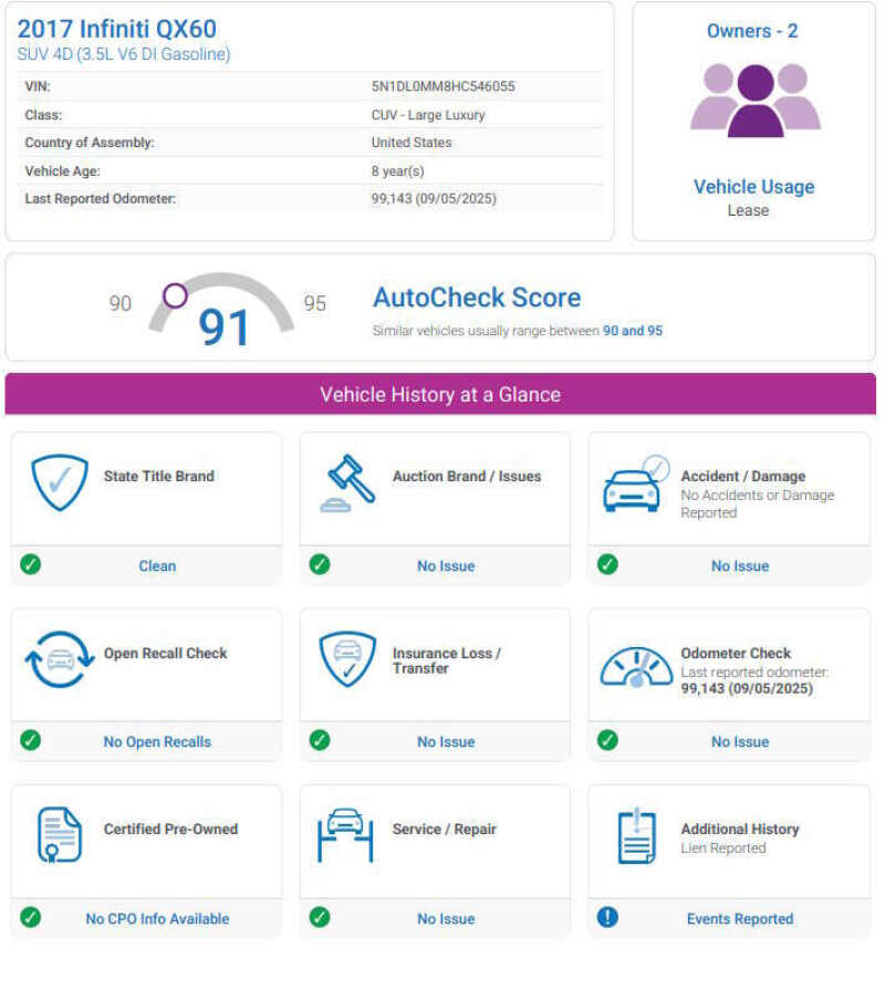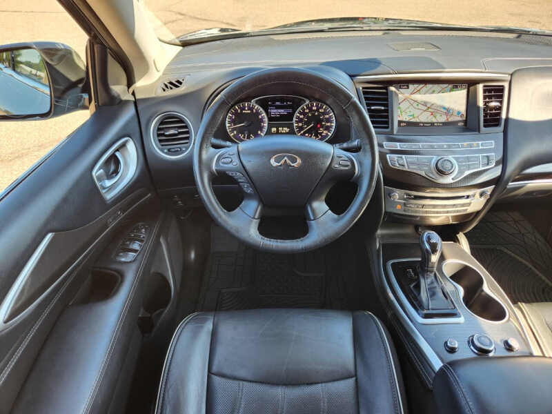 This vehicle is located at our Crystal Store. This vehicle comes with a clean title, and no accidents or damage ever reported. The 2017 Infiniti QX60 is a sophisticated three-row luxury crossover that blends elegant styling, family-friendly versatility, and smooth performance, powered by a 3.5-liter V6 engine producing 295 horsepower and 270 lb-ft of torque paired with a seamless continuously variable transmission and available Intelligent All-Wheel Drive for confident handling in all conditions its spacious interior seats up to seven with flexible second-row seating that slides and reclines for easy third-row access, while premium touches like leather upholstery, heated front seats, tri-zone automatic climate control, and an available Bose premium sound system create a comfortable and upscale cabin experience advanced safety features such as forward collision warning, blind-spot monitoring, and Infinitis Around View Monitor with moving object detection provide peace of mind, and with an efficient 20 city/27 highway mpg rating, the QX60 delivers a perfect balance of luxury, practicality, and everyday usability for families and commuters alike. Come on down to RavMotors of Crystal to test-drive our cars! We'll be happy to help you find the right car at the right price. Call for vehicle availability at 763-401-4242 or email us at ravmotorsofcrystalgmail.com. Make sure to check out our inventory at www.ravmotors.com We stand behind all of our cars. We are open from 1000 AM - 700 PM on Monday-Thursday and 1000 AM - 600 PM on Friday-Saturday.