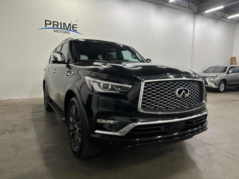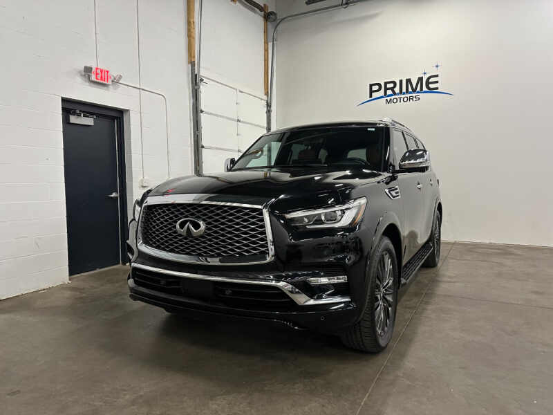 One Owner Clean Carfax And Title. Full Factory Warranty Remaining From Infiniti. Fully Inspected, Serviced, And Detailed. Clean Both Inside And Out, Well Cared For. Non-Smoker. Runs And Drives Like New. Mineral Black Exterior Color. $92K MSRP New. Loaded Up Sensory Trim Featuring Heated And Cooled Semi-Aniline Leather Interior, Power Sunroof, 12.3 Interactive Media Display With Navigation, Mapcare & Premium Traffic, Bose 17 Speaker Sound System, Apple CarPlay & Android Auto Compatible, Wireless Charging, Hydraulic Body Motion Control, Tow Package With 8500 LB Capacity, Remote Start, LED Headlamps & Fog Lamps, Heated Power Folding Exterior Mirrors, Power Lift Gate, Heated Steering Wheel, Second Row Heated Seats, Power Folding & Reclining Third Row Seating, Intelligent Cruise Control, Distance Control Assist, Radiant Illuminated Kick Plates, Roof Rail Cross Bars, Cargo Package, Predictive Forward Collision Warning, Forward Emergency Braking With Pedestrian Detection, Blind Spot Warning, Blind Spot Intervention, Lane Departure Warning, Around View Monitor With Moving Object Detection, All Mode 4WD, And So Much More. Every Vehicle At Prime Motors Is Fully Inspected, Serviced, Detailed, And Comes With A Free CARFAX Report. Low Financing Rates And Aggressively Priced Service Plan Options Are Available. Trade Ins Welcome. Visit Prime Motors to shop our great deals. You can call 651-324-4087 to schedule your test drive today.