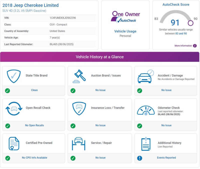 This vehicle is located at our Burnsville store. CLEAN TITLE!! NO ACCIDENTS!! ONE OWNER!! FRESH OIL CHANGE!! SERVICED AND READY TO HIT THE ROAD! The 2018 Jeep Cherokee Limited combines rugged Jeep capability with upscale comfort, making it a standout choice for drivers who want versatility without sacrificing style. Powered by a 3.2-liter V6 with 271 horsepower, paired to a smooth 9-speed automatic transmission, this SUV offers strong performance and confident handling on any road. The Limited trim elevates the experience with luxurious leather-trimmed seats, heated front seats and steering wheel, dual-zone climate control, and a user-friendly Uconnect infotainment system featuring an 8.4-inch touchscreen with Apple CarPlay and Android Auto. Its refined exterior design, highlighted by 18-inch polished aluminum wheels and sleek body lines, complements the Cherokees adventurous spirit, while Jeeps Select-Terrain traction system ensures surefooted control in all conditions. Safety features like blind-spot monitoring, rear cross-traffic alert, and a rearview camera add peace of mind to every drive. With its perfect mix of sophistication, utility, and off-road capability, the 2018 Jeep Cherokee Limited delivers a premium SUV experience thats ready for both city streets and open trails. Stop by RAVMOTORS to test drive this car. Well be more than happy to help you find the right car at the right price. We don't have any pushy or high-pressure salespeople. So come in and see for yourself why we have been the #1 DealerRater used car dealership of the year 5 years in a row. Extended Warranties and Financing options are available. Call us for vehicle availability at 952-456-4041 or email us at ravmotorsinfogmail.com. For more information and a full inventory visit us at www.ravmotors.com. We are open Monday Thursday 10 am 7 pm, Friday - Saturday 930 am 6 pm.