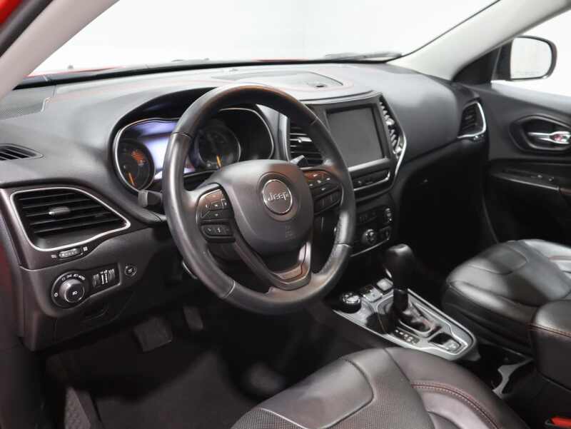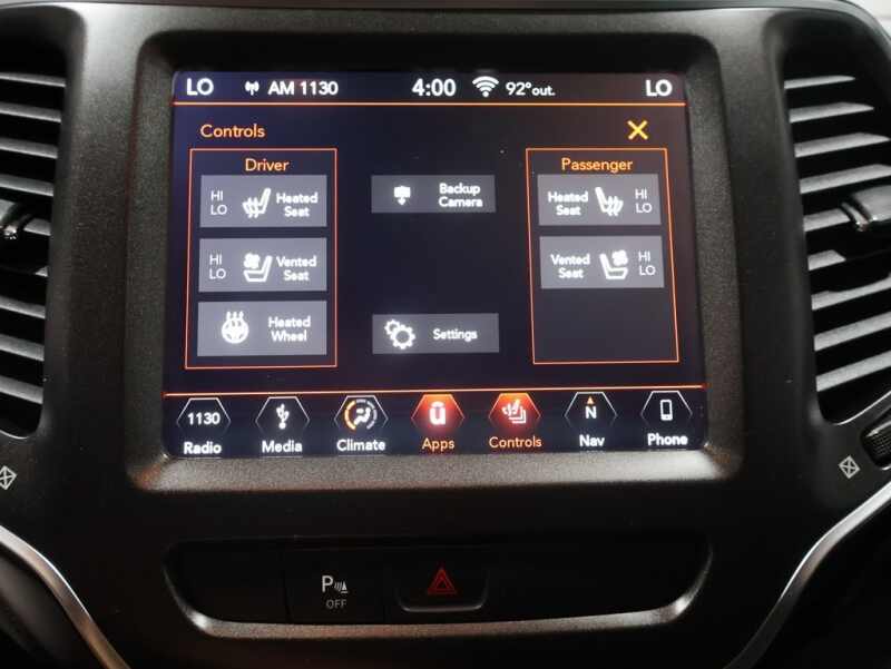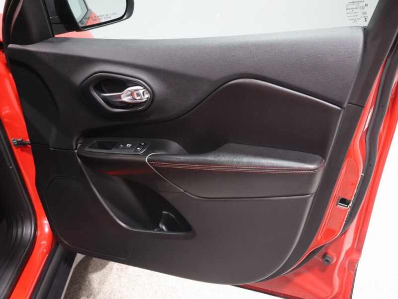 This Jeep Cherokee is well equipped and includes the following features and benefits, Navigation System, 4x4 / 4 Wheel Drive / AWD, 7 & 4 Pin Wiring Harness, Auto-Dimming Rear-View Mirror, Auxiliary Transmission Oil Cooler, Class III Receiver Hitch, Exterior Mirrors w/Memory, Hands-Free Power Liftgate, Heated Front Seats, Heated Steering Wheel, Power Driver/Passenger 4-Way Lumbar Adjust, Power Front Driver/Passenger Seats, Premium Alpine Speaker System, Premium Leather Trimmed Bucket Seats, Quick Order Package 27L Trailhawk Elite, Radio/Driver Seat/Exterior Mirrors Memory, Remote Start System, Security Alarm, Tonneau Cover, Trailer Tow Group, Trailer Tow Wiring Harness, Universal Garage Door Opener, Ventilated Front Seats, Windshield Wiper De-Icer. Odometer is 53968 miles below market average!
