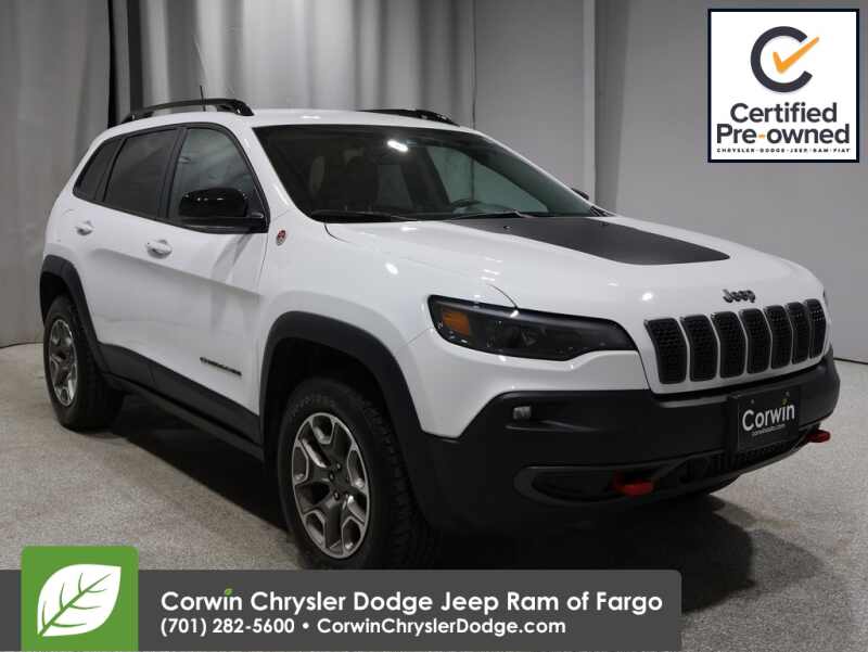 NO TRICKS THIS OCTOBER AT CORWIN CHRYSLER DODGE JEEP RAM OF FARGO!! TREAT YOURSELF THIS FALL WITH GREAT SAVINGS ON OUR PRE-OWNED VEHICLES AVAILABLE!!WE HAVE ONE OF THE LARGEST SELECTIONS OF INVENTORIES IN OUR AREA AT ONE LOCATION!! Priced below KBB Fair Purchase Price! Bright White Clearcoat 2022 Jeep Cherokee Trailhawk FACTORY CERTIFIED 4D Sport Utility 4WD 3.2L V6 Certified. CARFAX One-Owner. Clean CARFAX.
