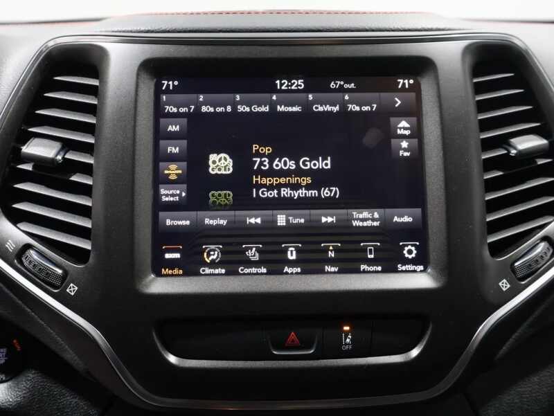 This Jeep Cherokee is well equipped and includes these key features and benefits, Heated Seats, Navigation System, Touchscreen Controls, Backup Camera, Automatic Headlights, Bluetooth Handsfree, AWD / 4x4 / Four Wheel, 1-Year SiriusXM Guardian Trial, 4G LTE Wi-Fi Hot Spot, 5-Year SiriusXM Traffic Service, 5-Year SiriusXM Travel Link Service, 7 & 4 Pin Wiring Harness, 8.4 Touchscreen Display, Apple CarPlay, Auto-Dimming Rear-View Mirror, Class III Receiver Hitch, Comfort/Convenience Group, For Details, Visit DriveUconnect.com, For More Info, Call 800-643-2112, Fully automatic headlights, Google Android Auto, GPS Antenna Input, GPS Navigation, Hands-Free Power Liftgate, HD Radio, Heated front seats, Integrated Voice Command w/Bluetooth, Off-Road Info Pages, ParkView Rear Back-Up Camera, Premium Alpine Speaker System, Quick Order Package 27E, Radio Uconnect 4C Nav w/8.4 Display, Security Alarm, SiriusXM Radio Service, SiriusXM Satellite Radio, SiriusXM Traffic Plus, SiriusXM Travel Link, Sound & Nav Group, Trailer Tow Group, Trailer Tow Wiring Harness, Universal Garage Door Opener, USB Host Flip. Odometer is 10143 miles below market average!