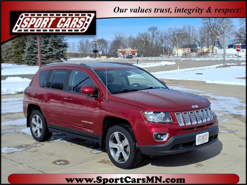 *MOONROOF/SUNROOF* *4WD/AWD* There is only one car out there that points true North, and it is this ACCIDENT FREE 2016 Jeep Compass High Altitude! Red on gray, it has every feature one could possibly need(le) heated leather seats, CD player, Bluetooth, and more! Edmunds.com is all kinds of rosy for it ' 'Those baby-Grand Cherokee looks certainly don't hurt, either, and the Jeep name has enduring appeal for many shoppers.' ' No worries if you set it a degree off--the model earned PERFECT SAFETY ratings on all impacts from the IIHS! Call, click, or simply get pointed to Sport Cars for this magnetic 2016 Compass, today! ... Here at Sport Cars, we do used cars a little bit different than what you may be used to. Our selection is superb, and our sales staff will treat you right. Don't buy a car feeling you have been played as ' 'sport' '--stop into Sport Cars or visit www.sportcarsmn.com , today! ... Sport Cars is the premiere dealership serving the greater Norwood Young-America area. Located conveniently off of Highway 212. Whether you are buying, selling or trading in, our staff will be happy to assist you with all of your vehicle needs. Thank you for considering Sport Cars!