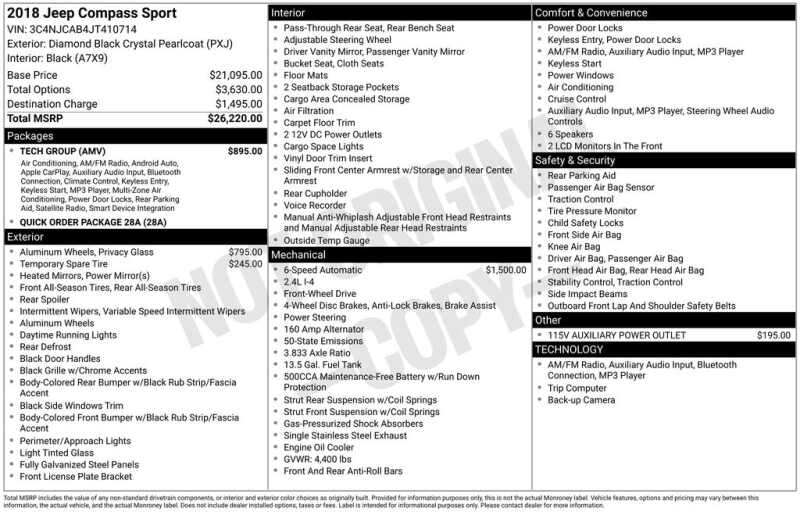 Recent Arrival! Diamond Black Crystal Pearlcoat 2018 Jeep Compass Sport 4D Sport Utility FWD 2.4L I4