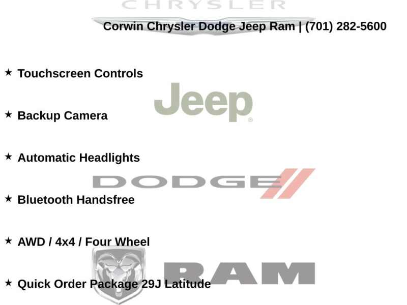 This Jeep Compass is well equipped and includes these key features and benefits, Touchscreen Controls, Backup Camera, Automatic Headlights, Bluetooth Handsfree, AWD / 4x4 / Four Wheel, Quick Order Package 29J Latitude. Odometer is 31969 miles below market average! 24/32 City/Highway MPG