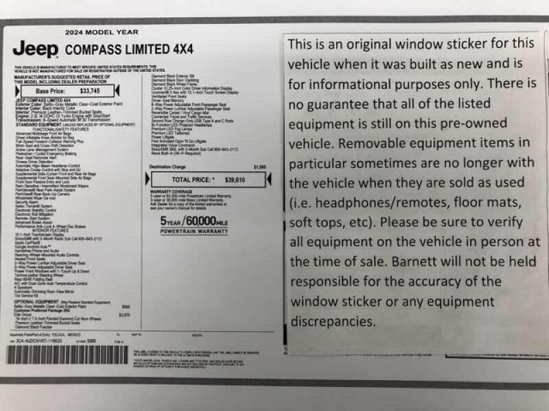 Listed selling price includes a $1000 Barnett Trade Bonus. Trade-in vehicles no more than 10 years old and 100K miles or less with a clean title automatically qualify. Trade-in vehicles outside these parameters need to be discussed and reviewed in person with the dealership to determine qualification.