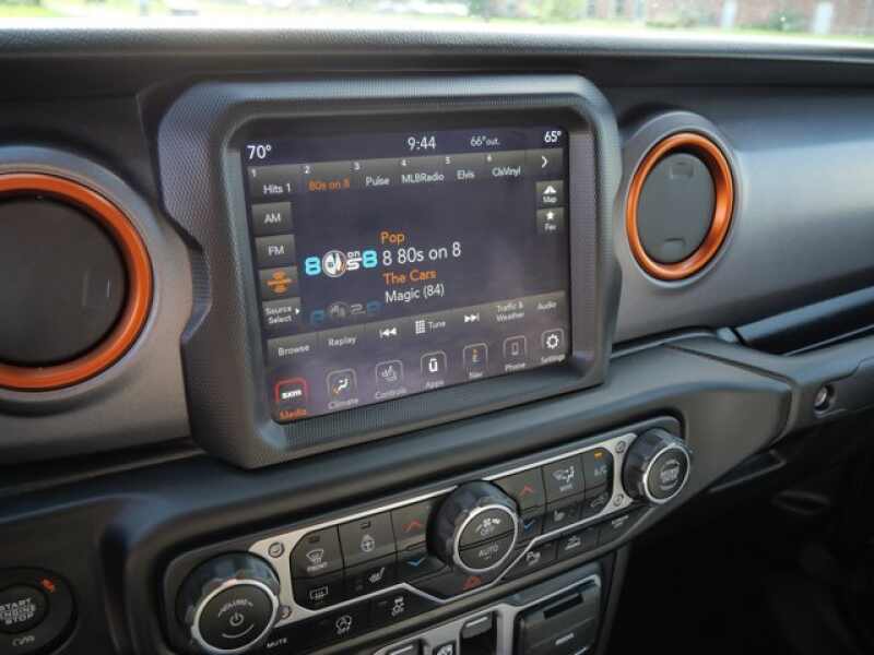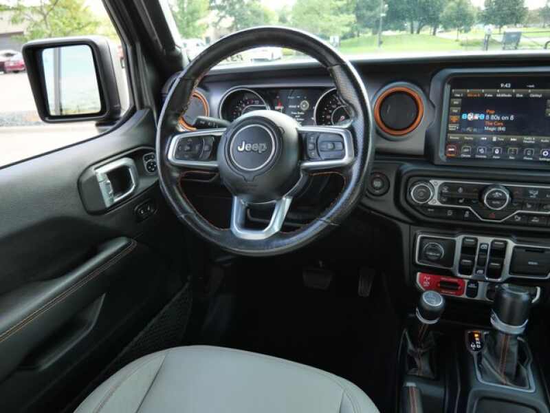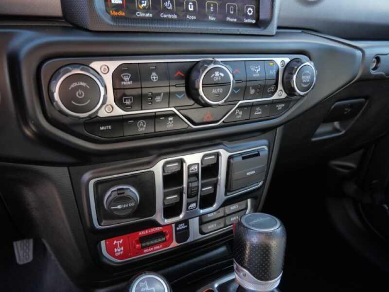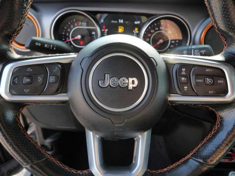 BODY COLOR 3-PIECE HARD TOP Freedom Panel Storage Bag, Rear Window Defroster, Rear Sliding Window, No Soft Top, TRANSMISSION 8-SPEED AUTOMATIC (850RE) Tip Start, Transmission Skid Plate, Selec-Speed Control, 8.4 RADIO & PREMIUM AUDIO GROUP SiriusXM Traffic Plus, Alpine Premium Audio System, HD Radio, Radio Uconnect 4C Nav w/8.4 Display, Rear View Auto Dim Mirror, For Details, Visit DriveUconnect.com, 1-Year SiriusXM Guardian Trial, GPS Navigation, SiriusXM Travel Link, Emergency/Assistance Call, 8.4 Touchscreen Display, GLOBAL BLACK/STEEL GRAY, LEATHER TRIMMED BUCKET SEATS Full Length Floor Console Premium Armrest, Leather Wrapped Park Brake Handle, Leather Wrapped Shift Knob, Premium Door Trim Panel, Rear Armrest w/Cupholder Seat, LED LIGHTING GROUP Daytime Running Lamps LED Accents, LED Park Turn Lamps, Front LED Fog Lamps, LED Premium Reflector Headlamps, LED Taillamps, COLD WEATHER GROUP Heated Steering Wheel, Heated Front Seats, SAFETY GROUP ParkSense Rear Park Assist System, Blind Spot & Cross Path Detection, ADVANCED SAFETY GROUP Advanced Brake Assist, Auto High Beam Headlamp Control, Full Speed Forward Collision Warning Plus, MOPAR BLACK TUBULAR SIDE STEPS, TRAILER TOW PACKAGE Trailer Hitch Zoom, Class IV Hitch Receiver, Heavy Duty Engine Cooling, 240 Amp Alternator, REMOTE START SYSTEM, MOPAR SPRAY IN BEDLINER, ENGINE 3.6L V6 24V VVT UPG I W/ESS (STD).