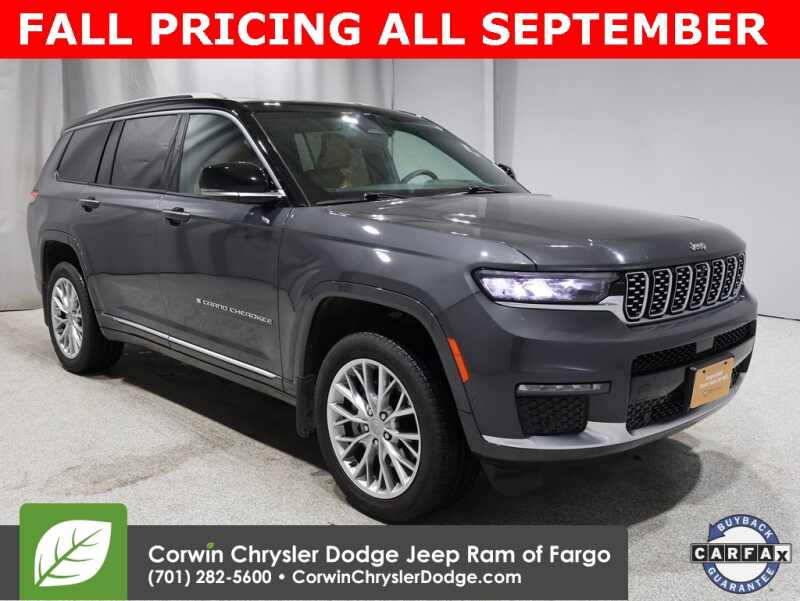 THE SEPTEMBER TO REMEMBER CORWIN CHRYSLER DODGE JEEP RAM OF FARGO!! OFFERING GREAT SAVINGS ON OUR PRE-OWNED VEHICLES AVAILABLE!! WE HAVE ONE OF THE LARGEST SELECTIONS OF INVENTORIES IN OUR AREA AT ONE LOCATION!! Priced below KBB Fair Purchase Price! Baltic Gray Metallic Clearcoat 2022 Jeep Grand Cherokee L Summit FACTORY CERTIFIED 4D Sport Utility 4WD HEMI 5.7L V8 Multi Displacement VVT Certified. CARFAX One-Owner. Clean CARFAX.