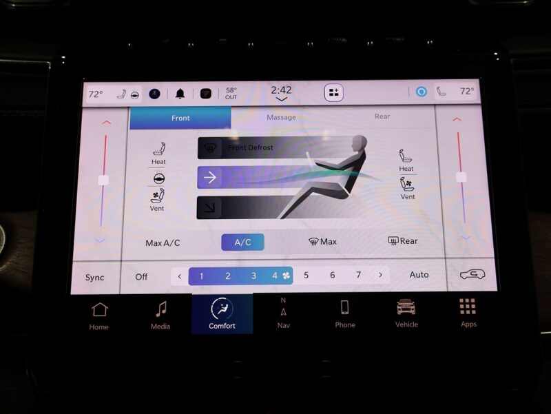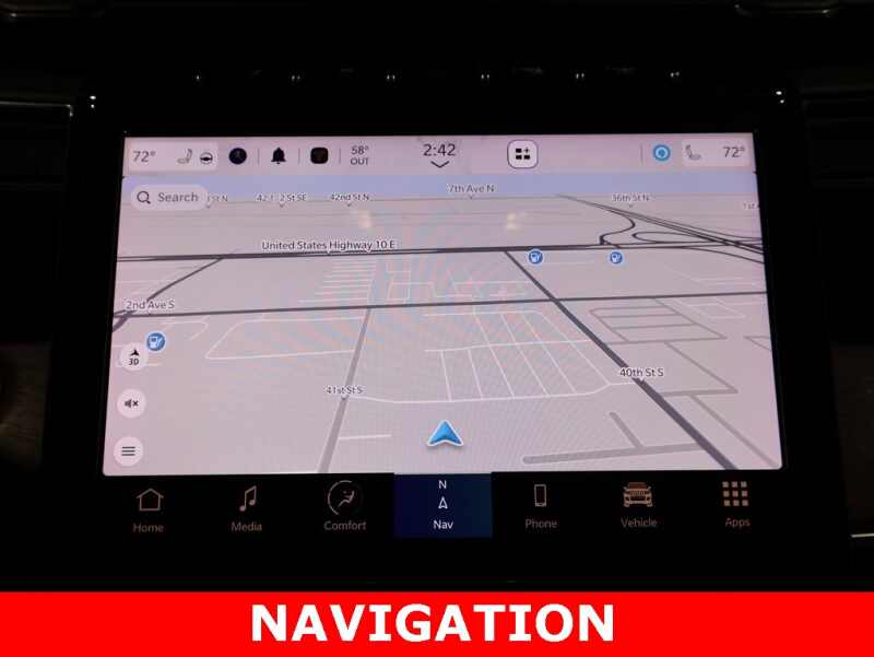 This Jeep Grand Cherokee L is well equipped and includes these key features and benefits, Heated and Cooled Seats, Navigation System, Touchscreen Controls, Backup Camera, Automatic Headlights, Bluetooth Handsfree, AWD / 4x4 / Four Wheel, 2nd Row Manual Window Shades, 3rd row seats split-bench, Advanced Protech Group IV, Conventional Differential Rear Axle, Electronic Limited Slip Differential Delete, Heads-Up Display, Heated front seats, Interior Rear Facing Camera, Luxury Tech Group V, MOPAR Finishing Package, MOPAR Front Splash Guards, MOPAR Paint Protection Film, MOPAR Rear Splash Guards w/Jeep Logo, Navigation System, Night Vision/Pedestrian-Animal Detection, Power Liftgate, Power moonroof, Power passenger seat, Quick Order Package 25S, Rearview Autodim Digital Display Mirror, Two Tone Paint Group, Ventilated front seats, Wireless Charging Pad. Odometer is 3525 miles below market average!