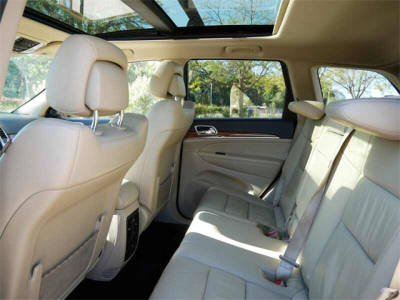 This Grand Cherokee is well equipped with Quick Order Package 26H, Trailer Tow Group (7 & 4 Pin Wiring Harness, Class IV Receiver Hitch, and Rear Load Leveling Suspension), 4WD, 10 Speakers, 18 x 8.0 Aluminum Polished Wheels, 3.09 Axle Ratio, 4-Wheel Disc Brakes, 40GB Hard Drive w/20GB Available, ABS brakes, Air Conditioning, Alloy wheels, AM/FM radio SIRIUS, Anti-whiplash front head restraints, Audio memory, Auto High-beam Headlights, Auto-dimming door mirrors, Auto-dimming Rear-View mirror, Automatic temperature control, Bodyside moldings, Brake assist, Bumpers body-color, CD player, Compass, Delay-off headlights, Driver door bin, Driver vanity mirror, Dual front impact airbags, Dual front side impact airbags, DVD-Audio, Electronic Stability Control, Exterior Parking Camera Rear, Four wheel independent suspension, Front anti-roll bar, Front Bucket Seats, Front Center Armrest w/Storage, Front dual zone A/C, Front fog lights, Front reading lights, Fully automatic headlights, Garage door transmitter, Genuine wood dashboard insert, GPS Navigation, Heated door mirrors, Heated front seats, Heated rear seats, High intensity discharge headlights Bi-Xenon, Illuminated entry, Leather Shift Knob, Low tire pressure warning, Media Center 430N CD/DVD/MP3/HDD/Navigation, Media Center 730N CD/DVD/MP3/HDD/Navigation, Memory seat, Navigation system Garmin, Normal Duty Suspension, Occupant sensing airbag, Outside temperature display, Overhead airbag, Overhead console, Panic alarm, Passenger door bin, Passenger vanity mirror, Power door mirrors, Power driver seat, Power moonroof, Power passenger seat, Power steering, Power windows, Premium Leather Trimmed Bucket Seats, Radio data system, Rain sensing wipers, Rear anti-roll bar, Rear Parking Sensors, Rear reading lights, Rear seat center armrest, Rear window defroster, Rear window wiper, Remote keyless entry, Roof rack rails only, Security system, SIRIUS Realtime Traffic, SIRIUSXM Traffic, Speed control, Speed-Sensitive Wipers, Split folding rear seat, Spoiler, Steering wheel mounted audio controls, Tachometer, Telescoping steering wheel, Tilt steering wheel, Traction control, Trip computer, Turn signal indicator mirrors, and Variably intermittent wipers.