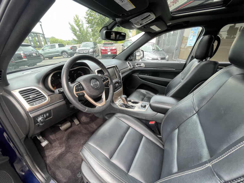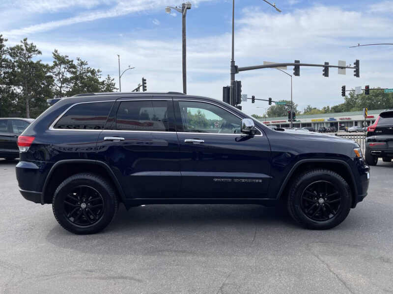 This 2017 Jeep Grand Cherokee Limited 4X4 is a rugged yet refined SUV powered by a reliable 3.6L V6 engine paired with an efficient 8-speed automatic transmission, delivering smooth power and excellent capability in all conditions. With just 48,277 miles, a clean title, and two previous owners, this Grand Cherokee is a low-mileage, very clean example thats ready for many more adventures. It also comes equipped with great tires, adding extra value and peace of mind. The Limited trim features a spacious and comfortable interior with leather seats, heated front seats, dual-zone climate control, power liftgate, Uconnect touchscreen infotainment with navigation, and a host of safety features including blind spot monitoring and rear cross-traffic alert. The advanced 4X4 system ensures confidence on rough terrain or slick roads, making it perfect for Minnesota winters or weekend getaways. Located at 2021 Mainstreet, Hopkins, MN 55343, this Jeep Grand Cherokee Limited is available with easy financing, warranties, trade-ins welcome, and nationwide shipping. Dont miss out on this low-mileage, fully loaded SUV.