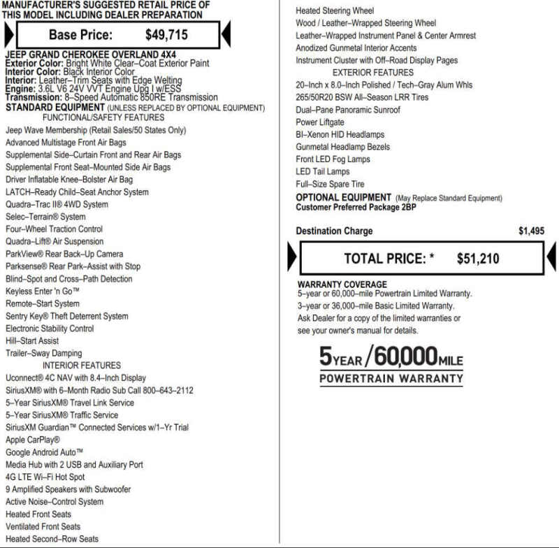 The 2021 Jeep Grand Cherokee Overland 4x4 4dr SUV is priced at $24,995. It is equipped with a 3.6L V6 engine and an automatic transmission. The car has 62K miles on it and is in excellent condition both inside and outside. It comes with various features and options. If you're interested in this Jeep Grand Cherokee or want more information, you can contact the sales team at Ace Auto Cars by calling or texting (952) 208-0584. You can also visit their website, www.AceAutoCars.com, to view more cars and access a 360 walk-around and panoramic interior view of the Jeep Grand Cherokee by copying and pasting the provided link https//spins.impel.io/aceautocars/1c4rjfcg4mc531593 into your browser. This vehicle has a prior salvage title due to hail damage. It was professionally repaired using the PDR (paintless dent removal) method, with the hood being replaced. Pre-repair photos are available upon request. WARRANTY Additionally, the car comes with a warranty of 30 days or 1,000 miles, whichever comes first, providing you with some confidence in your purchase even after leaving the lot. Vehicles are sold on a first-come, first-served basis. To secure a vehicle, a non-refundable 10% deposit is necessary.
